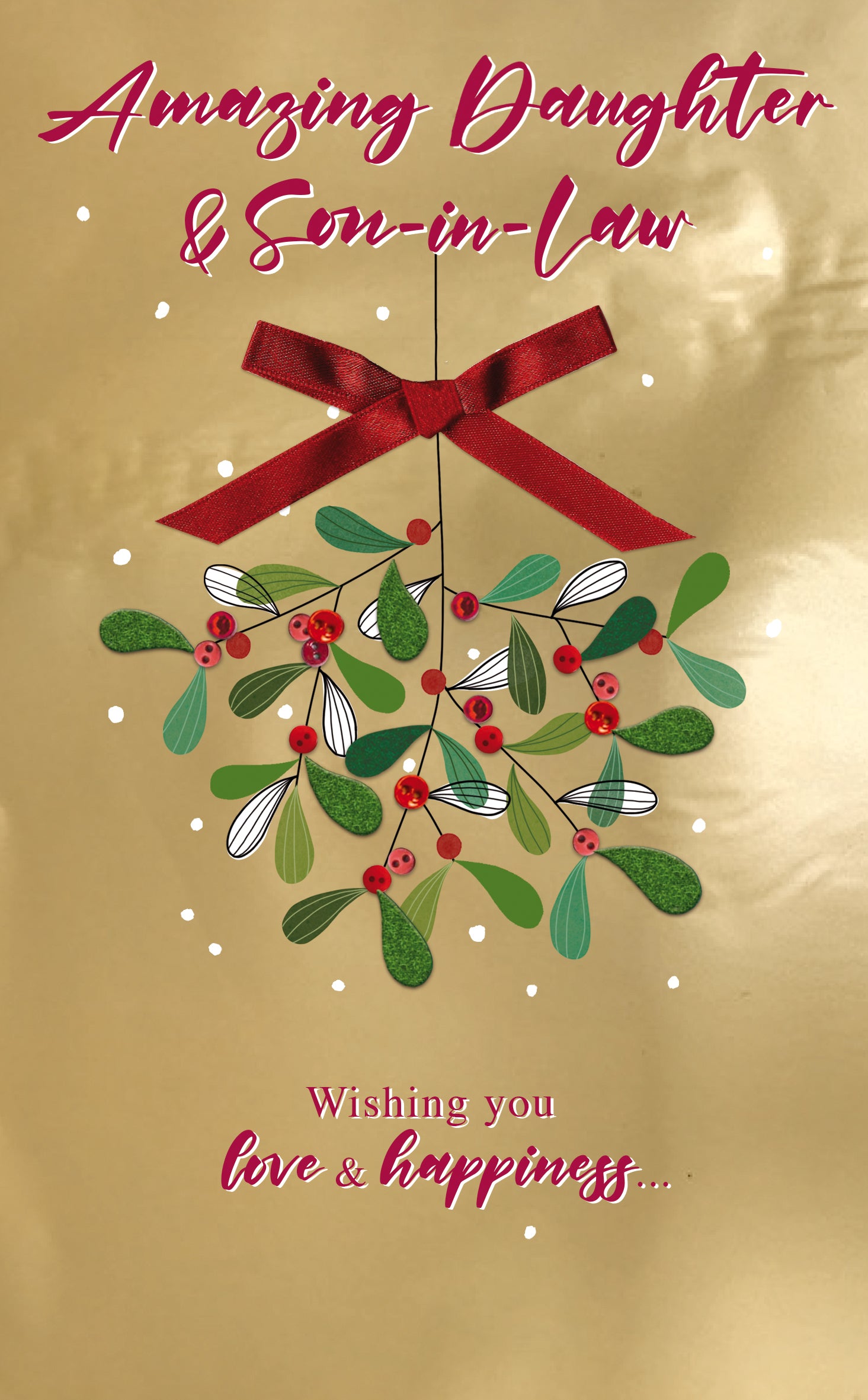 Looking for Christmas card ideas for your Daughter & Son-In-Law? This luxury embellished mistletoe design is a special way to spread love to family this Christmas