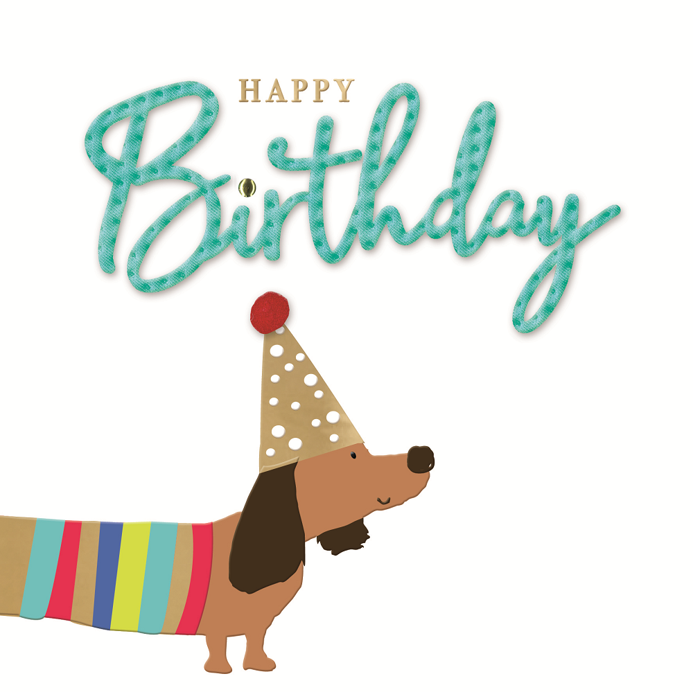 Decorated Sausage Dog Bright Embellished Birthday Greeting Card