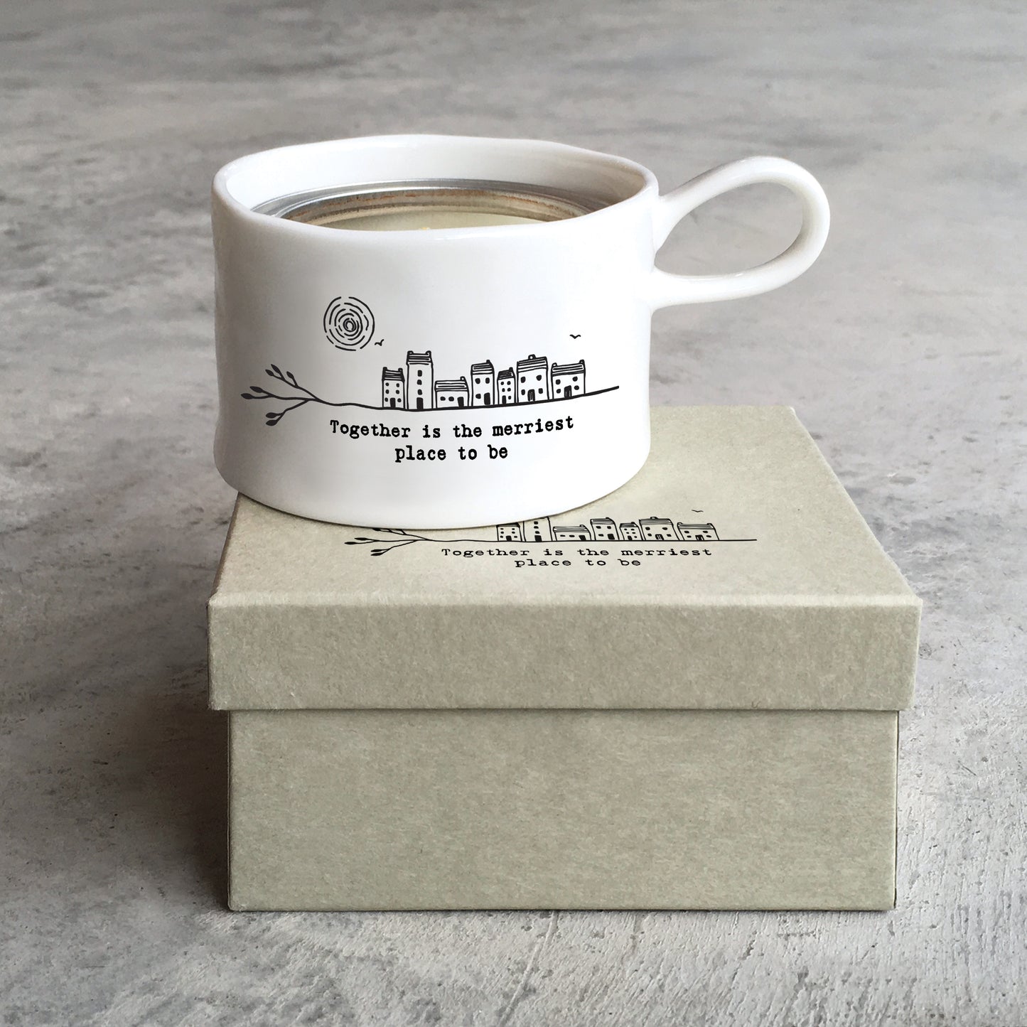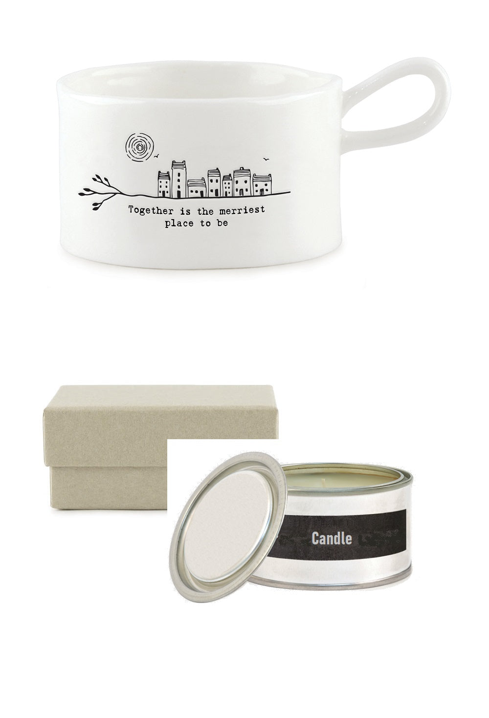 Details: A delightful gift idea from the inspirational East of India gift collection, this gorgeous tin candle holder with a handle is decorated on the side and includes a candle in a tin, the candle holder and gift box feature a heartfelt message. The candle is made of wax and delicately fragranced.