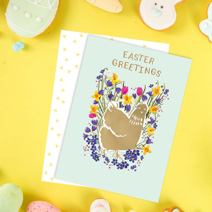 Details: Celebrate Easter with this stunning and environmentally conscious card from Second Nature's Bunnies & Blooms collection. Featuring gorgeous wildflowers and a golden chicken, this foiled card is the perfect addition to any gift basket and is sure to bring comfort to your loved ones.