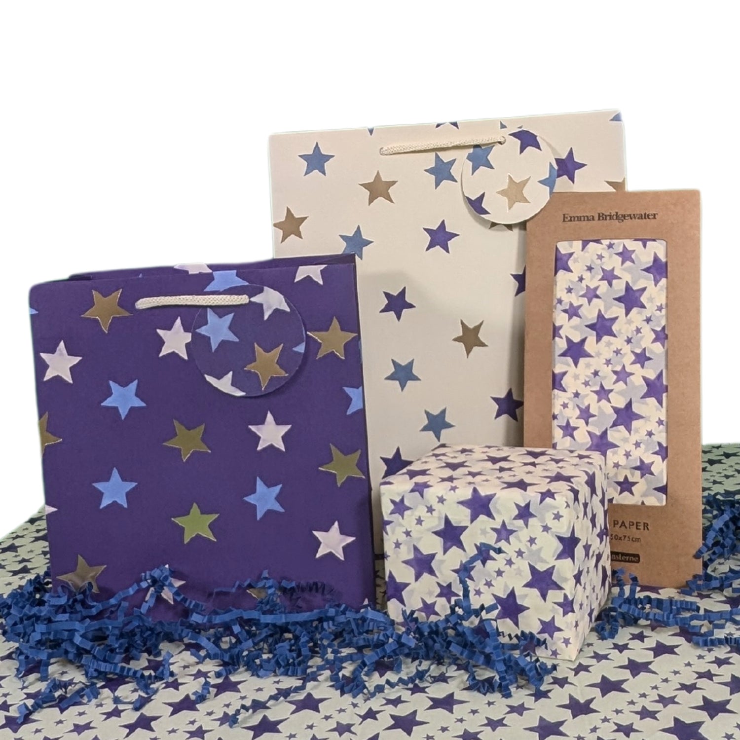 Details: This eco-friendly gift bag from Woodmansterne's Emma Bridgewater collection is a cheerful addition to any present. Adorned with a star-spangled pattern of bold blue stars this bag is sure to make your gift extra special.
