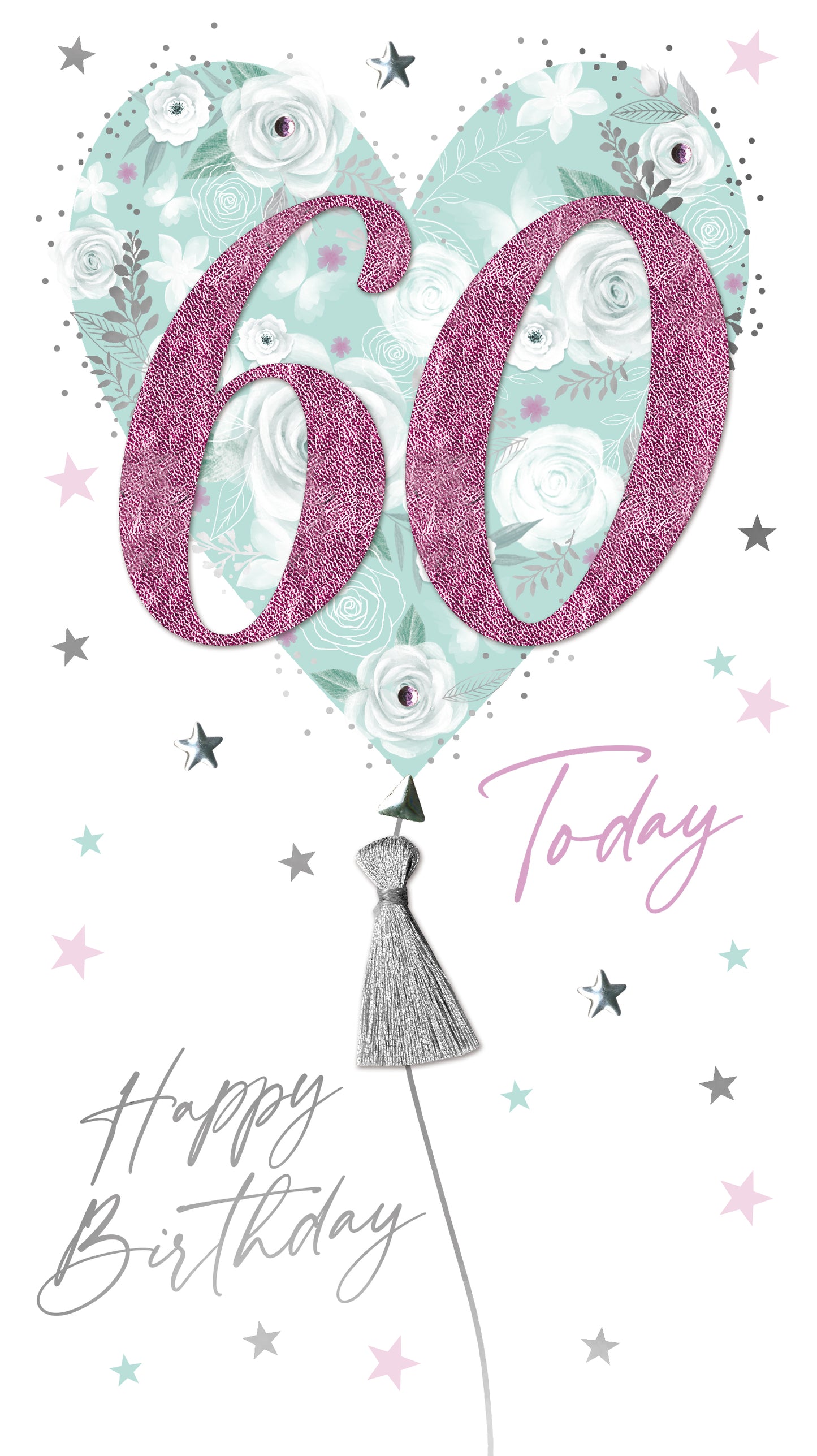 Want to add a touch of sparkle to your birthday wishes? This luxury balloon themed card has been hand-finished with sparkle and embellishments to make her special 60th birthday shine!
