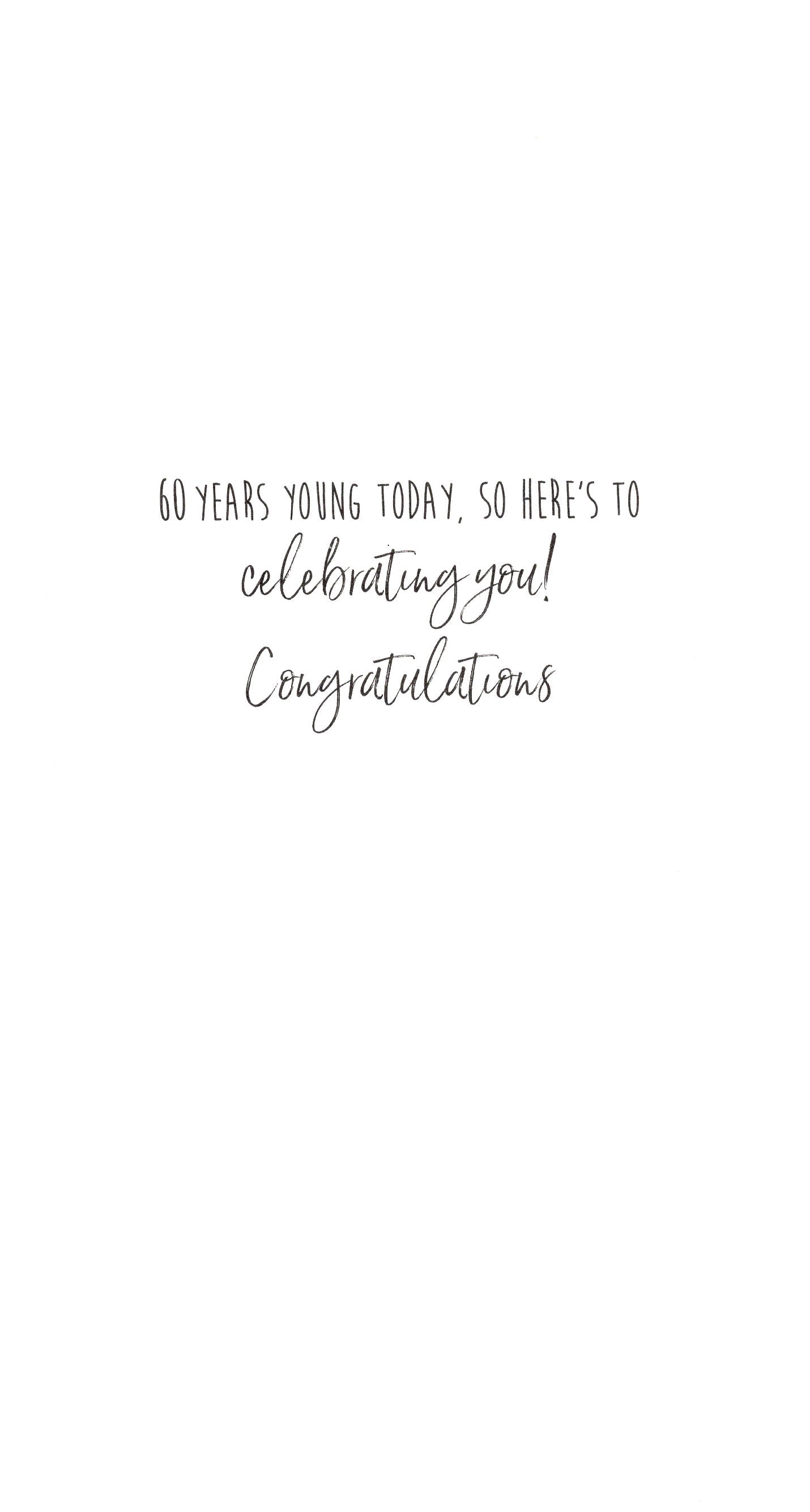 Message: 60 years young today, so here's to celebrating you! Congratulations