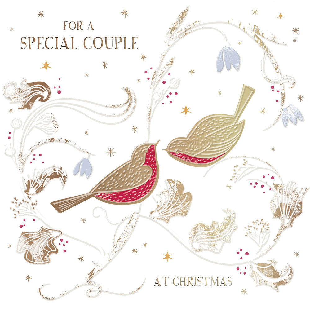 Why they'll love it: This gorgeous gold foiled festive robins Christmas card is simply stunning and is perfect for any special couple this Christmas