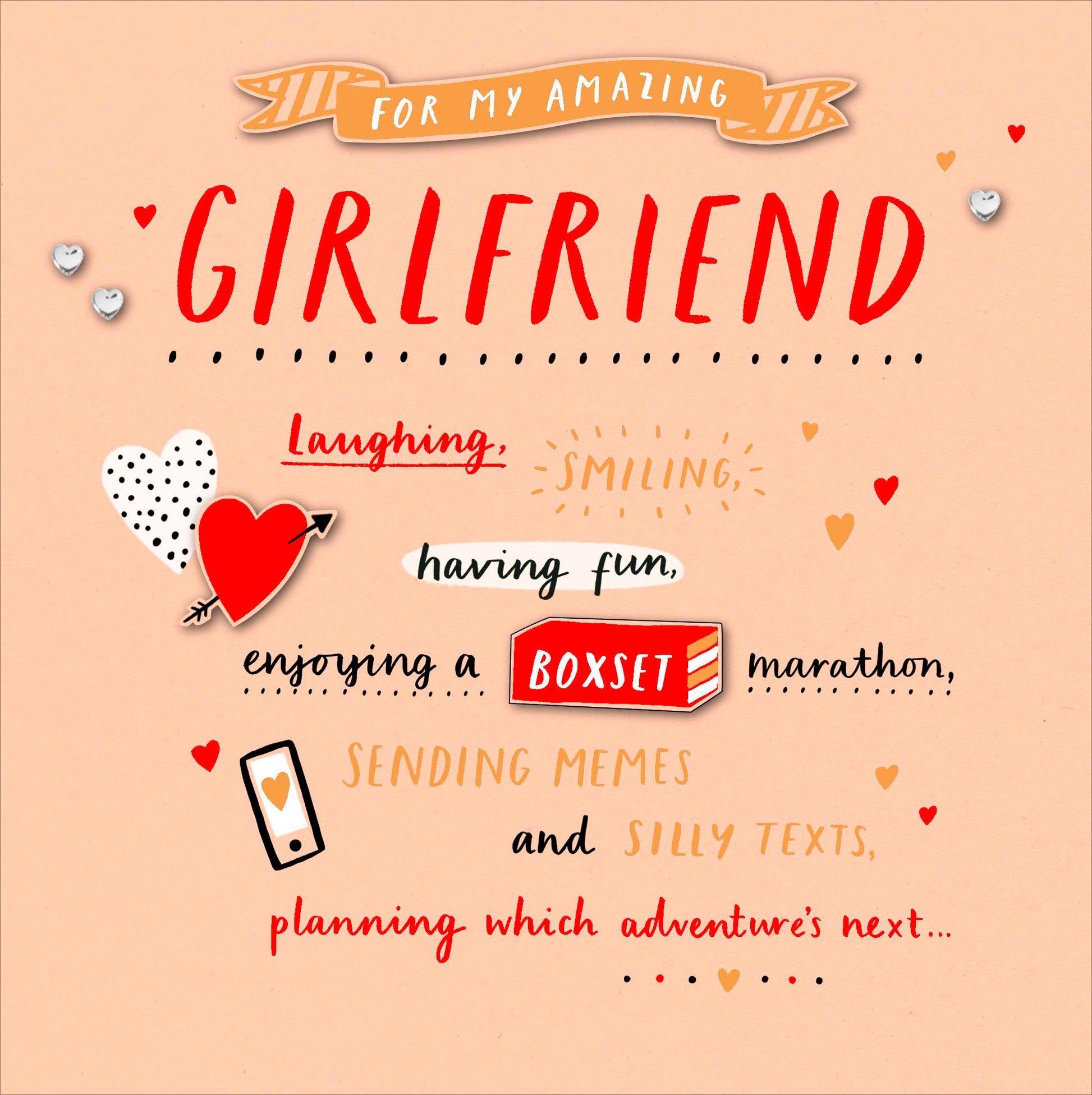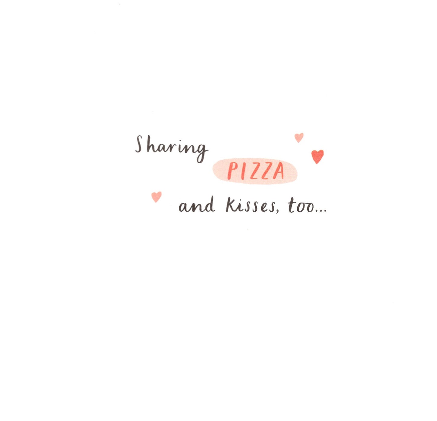 Message: For my amazing girlfriend laughing, smiling, having fun, enjoying a boxset marathon, sending memes and silly texts, planning which adventure's next… Sharing Pizza and kisses, too… I love every single minute with you! Happy Valentine's Day!