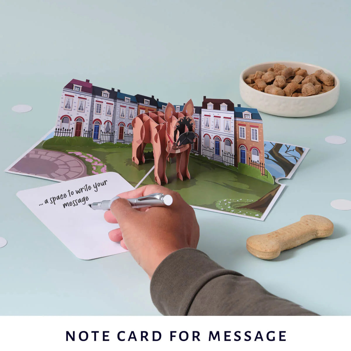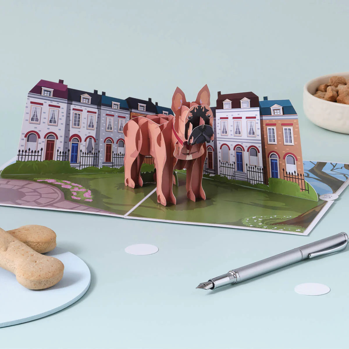 Details: This pop up card from Cardology is a delightful surprise waiting to unfold! Inside, it features a life-like French Bulldog, thoughtfully designed with dog lovers in mind.