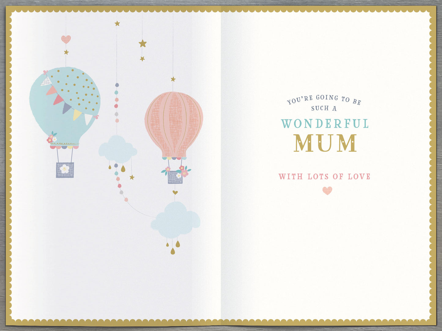 Message: YOU'RE GOING TO BE SUCH A WONDERFUL MUM WITH LOTS OF LOVE