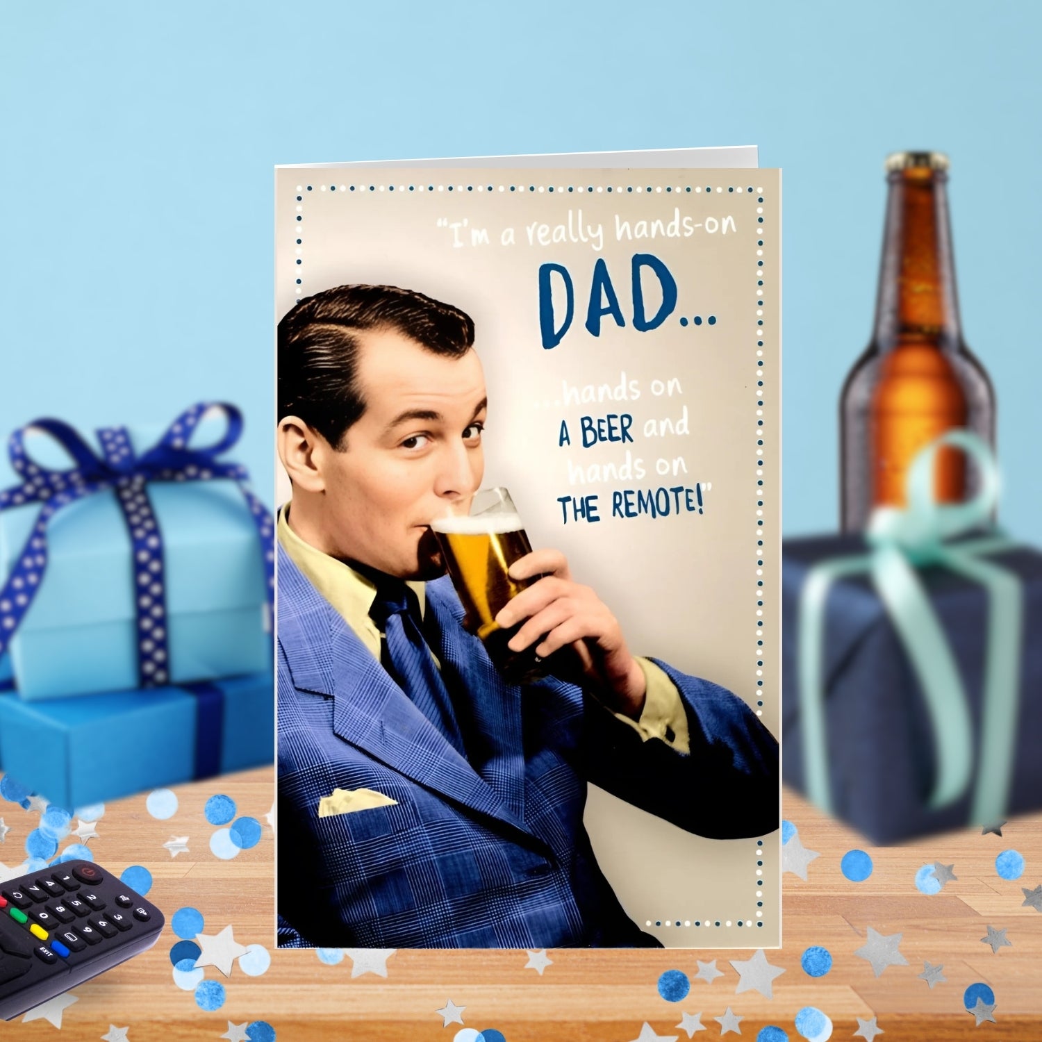 Crack open a smile this Father’s Day with a card made for the dad who rules the remote and loves a cold one!