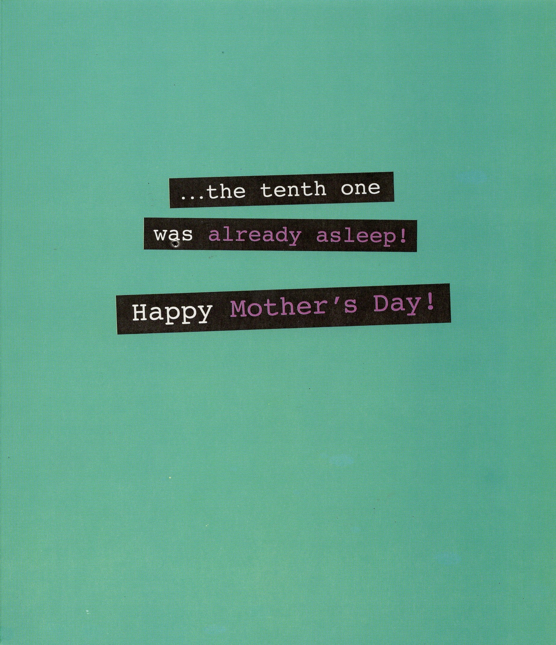 Message: When Mums were asked what they'd like for Mother's Day 9 out of 10 said "rest and relaxation"… … the tenth one wa already asleep! Happy Mother's Day!