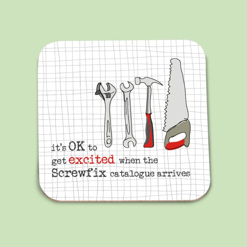 Caption: "it's OK to get excited when the Screwfix catalogue arrives"