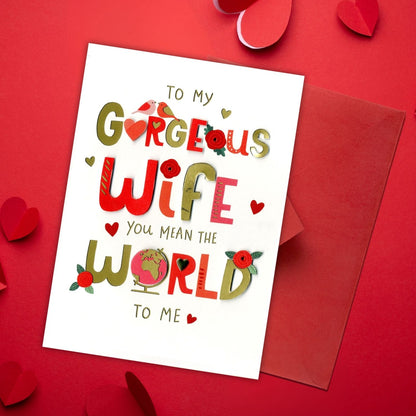 Details: Treat your wife to the romance she deserves with the Just Saying range's hand-finished card. Featuring love birds, red roses, and a heartfelt message, this embellished card will make her feel loved and appreciated every time she sees it on her mantelpiece.
