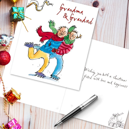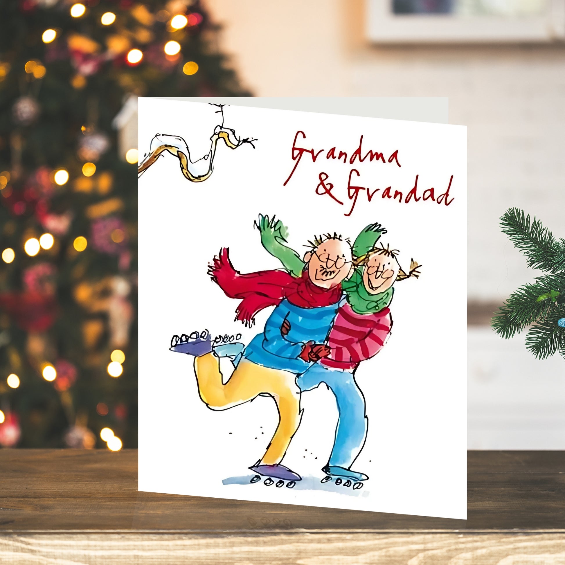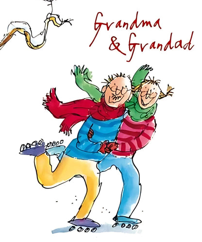 Details: A popular greeting card from Britain's best-loved illustrator Quentin Blake featuring a charming illustration of grandparents skating together in scarfs and gloves