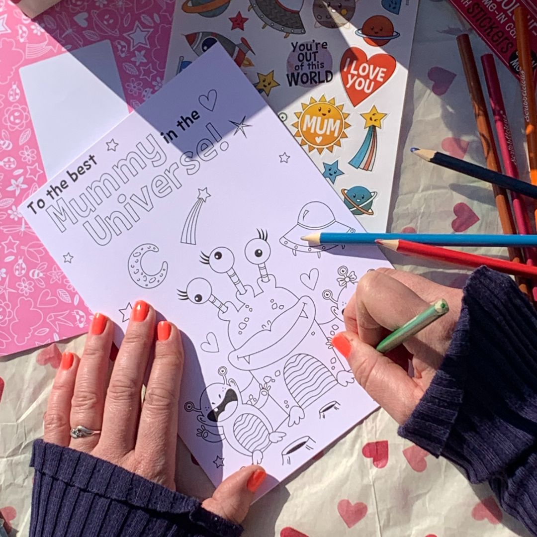 Details: A fun multi-caption greeting card designed for a child to personalise, it comes complete with a set of themed stickers inside and named stickers including Mum, Mummy, Grandma, Granny, Nan, Nana, Nanny and Gran that can be added to the card once it has been coloured in
