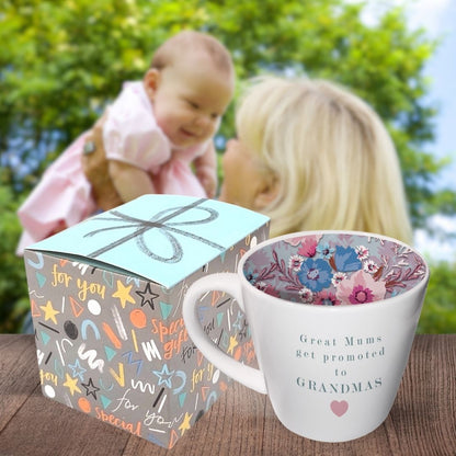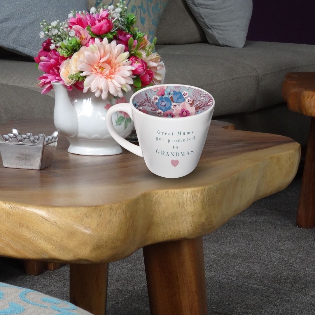 Are you looking for a thoughtful and sentimental gift to give to a new grandmother? This floral ceramic Inside Out mug captures the beautiful feeling of a mother becoming a grandmother, and is sure to bring joy to any special occasion.