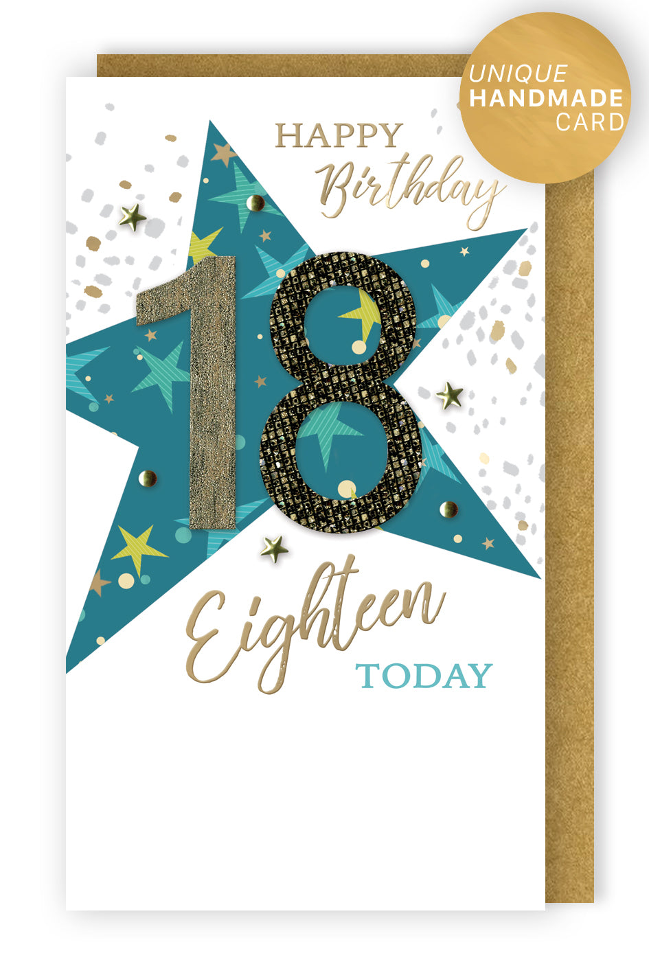 Looking for greeting card ideas for him? This handmade card expresses the joy and excitement of turning 18 with a golden number on a blue star. A perfect surprise for someone special on their birthday.