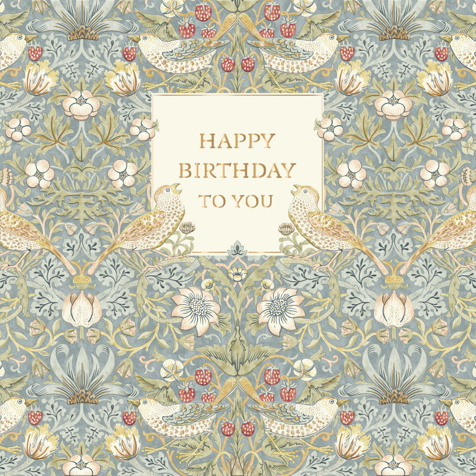 Details: A lovely greeting card from Ling Design's William Morris & Co range of wallpaper themed gold foil finished greeting cards, each card comes with an envelope and the card is sourced from sustainable forests.