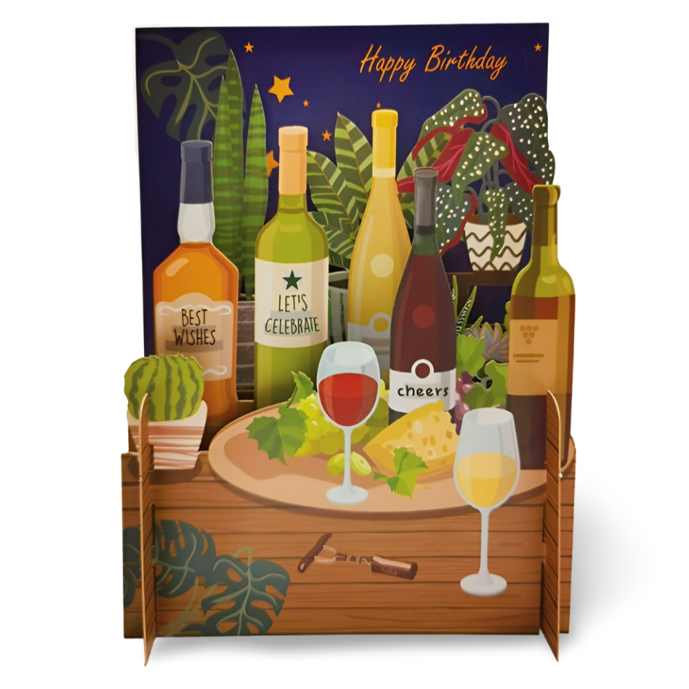 Wine and cheese? Yes, please! This fabulous 3D pop up card is the perfect way to say 'treat yourself' on their birthday!