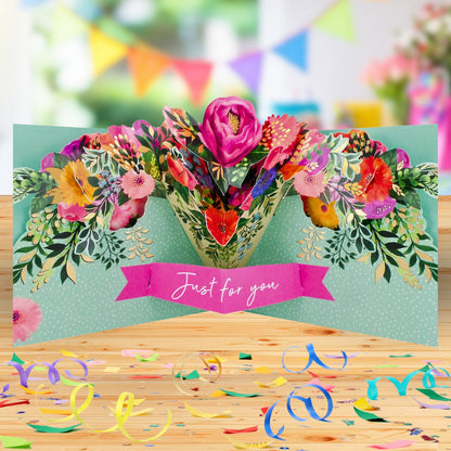 Looking for greeting card ideas for her? The 3D Happy Birthday Wishes Birthday Blossoms Galore! Birthday Pop Up Greeting Card is a delightful way to express love and joy on someone's special day. The vibrant floral birthday bouquet pops up, creating a delightful surprise that is sure to bring a smile to the recipient's face. It's the perfect way to show someone how much they mean to you.