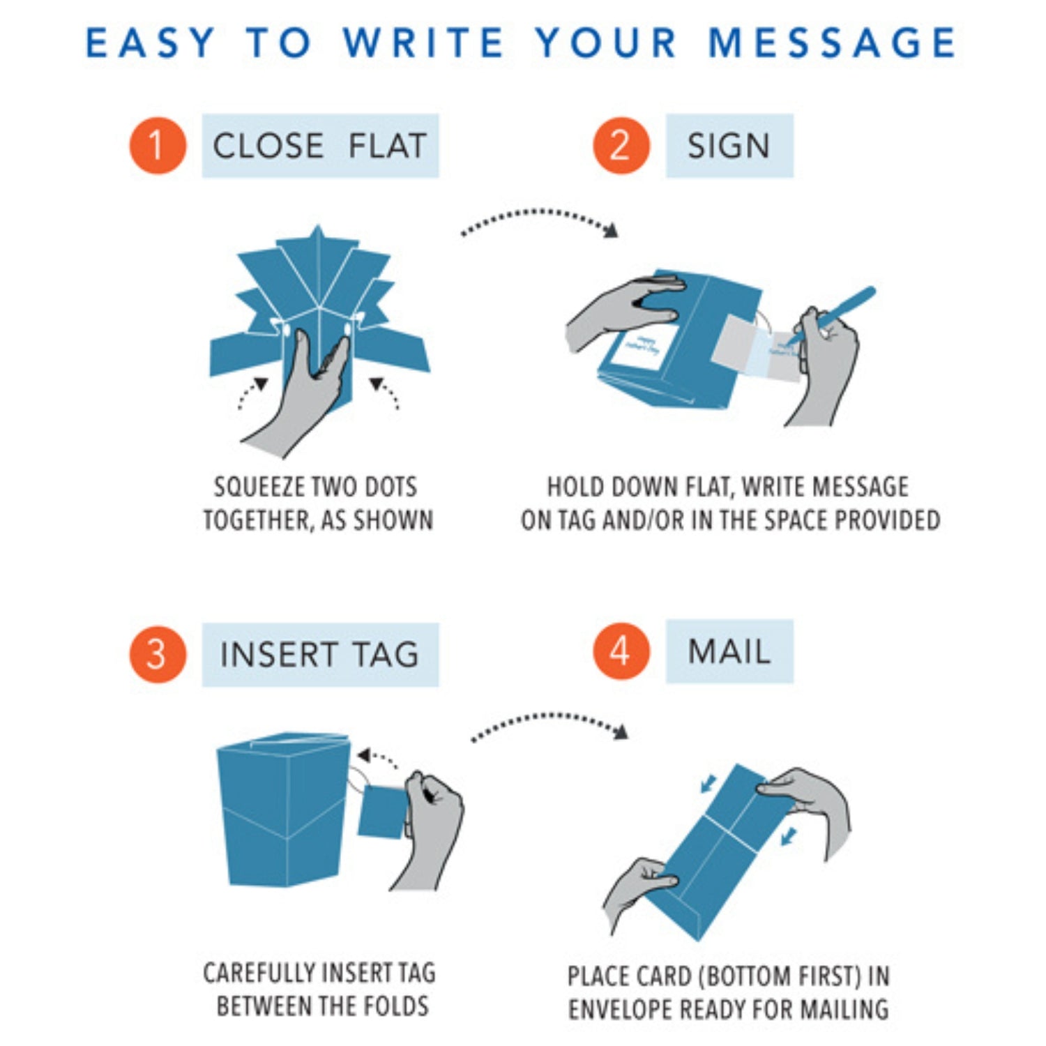 Good to know: A miracle in paper engineering these unique 3D cards pop up to form a stunning card display. Each card is made from sustainable and recyclable card, presented with a white envelope, and packaged in eco-friendly card packaging.