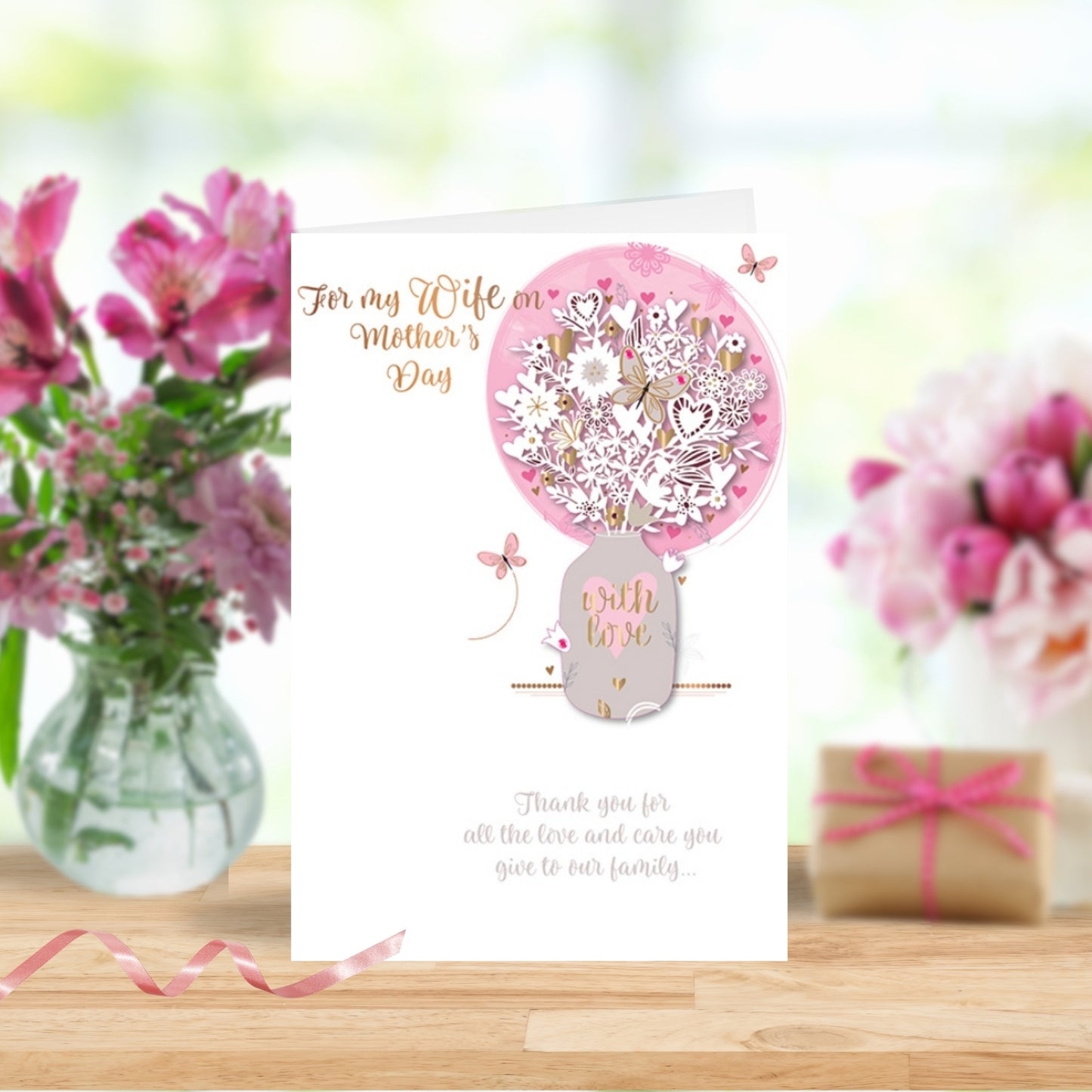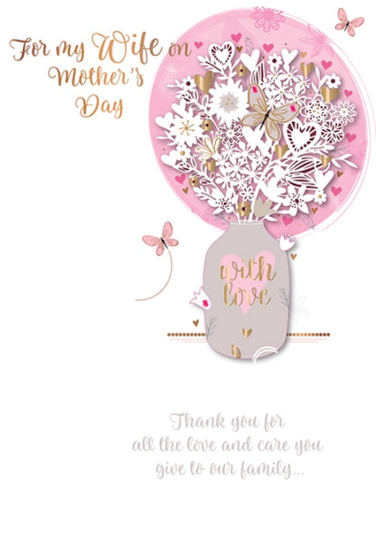 Searching for a meaningful way to express your love to your wife on Mother's Day? This exquisite handmade card perfectly captures your appreciation for your wife, celebrating her unwavering love and care for your family, making her feel cherished as an amazing mum.