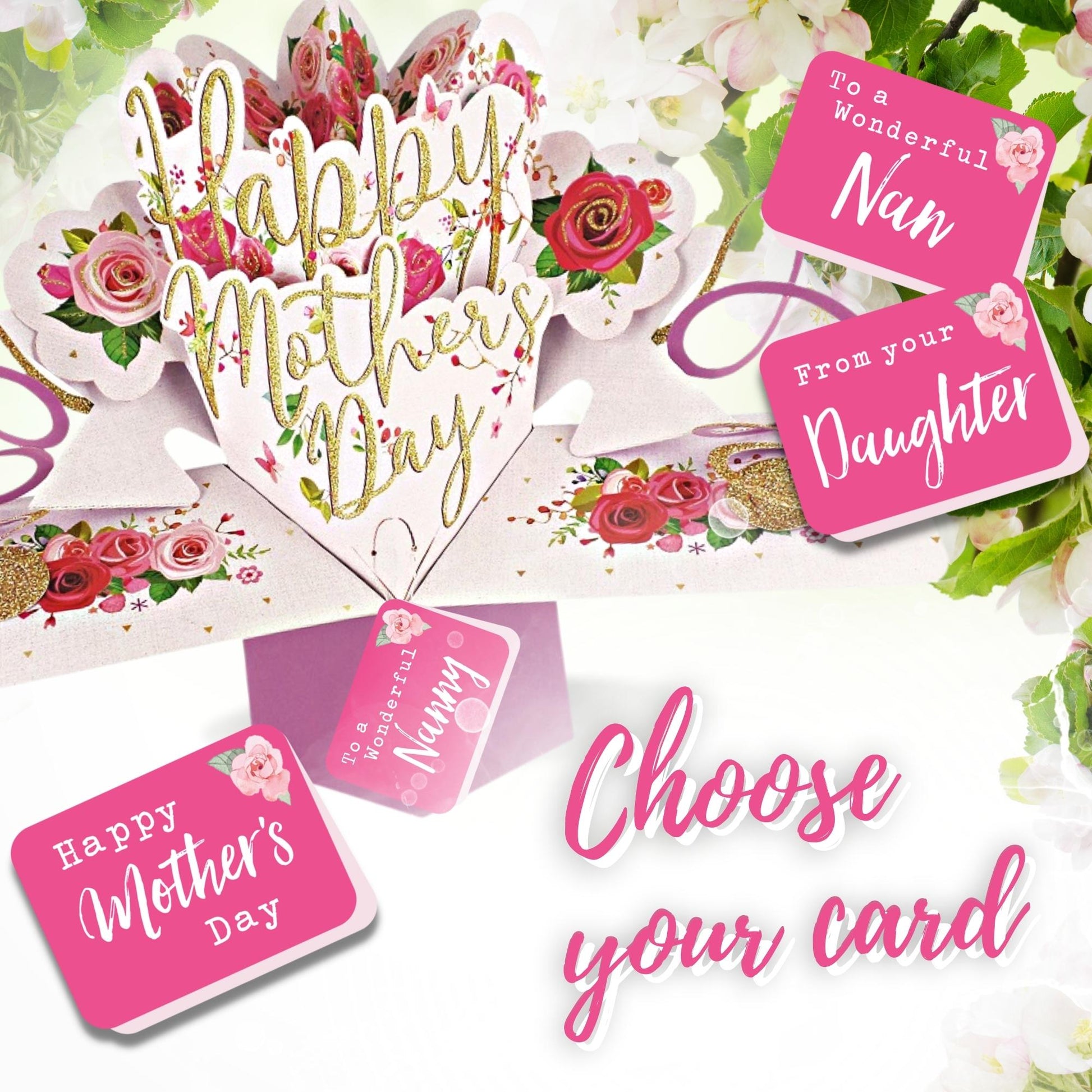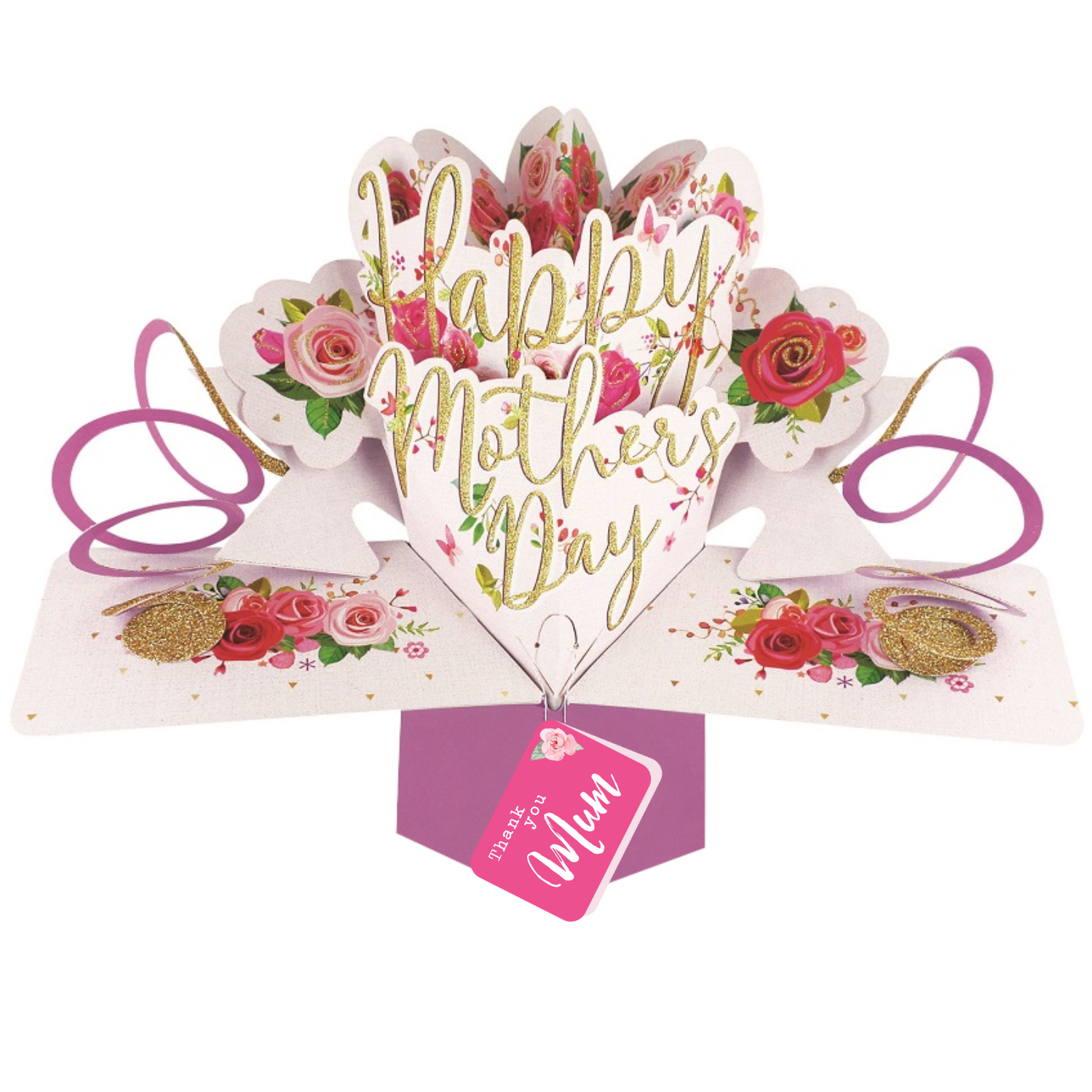 Why they'll love it: This stunning pop up Mother's Day card has a golden glittery finish that's bound to add sparkle to her special day. Let her know how much you appreciate her by sending a card that's just as special as she is.