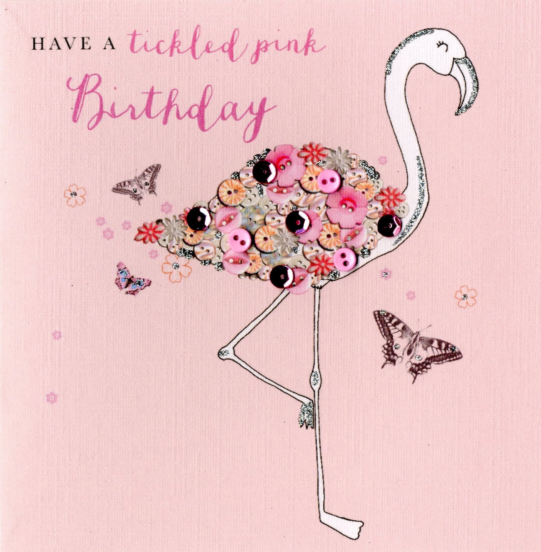 Details: A quality hand-finished, button, sequin and glitter embellished greeting card by Second Nature sealed in a protective wrapping complete with a silver envelope.