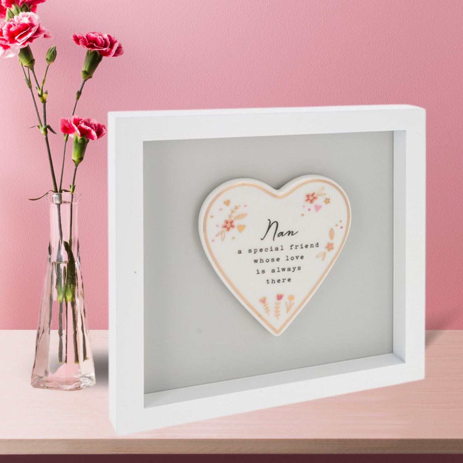 Details: This collectable plaque from the Heartfelt Art range boasts pink wildflower doodles alongside the heartfelt caption, 'Nan a special friend whose love is always there.' Guaranteed to lift the spirits of any special Nan.