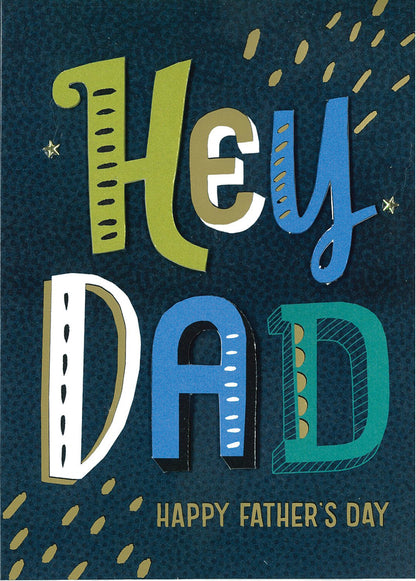 Details: This handmade Contemporary Card, part of the Just Saying range by Second Nature, is thoughtfully designed. With its dad typeface and the caption 'Hey DAD HAPPY FATHER'S DAY', this embellished card will surely bring joy to any special Dad. Fun, funky, and fabulous, it's the perfect greeting card for Father's Day.