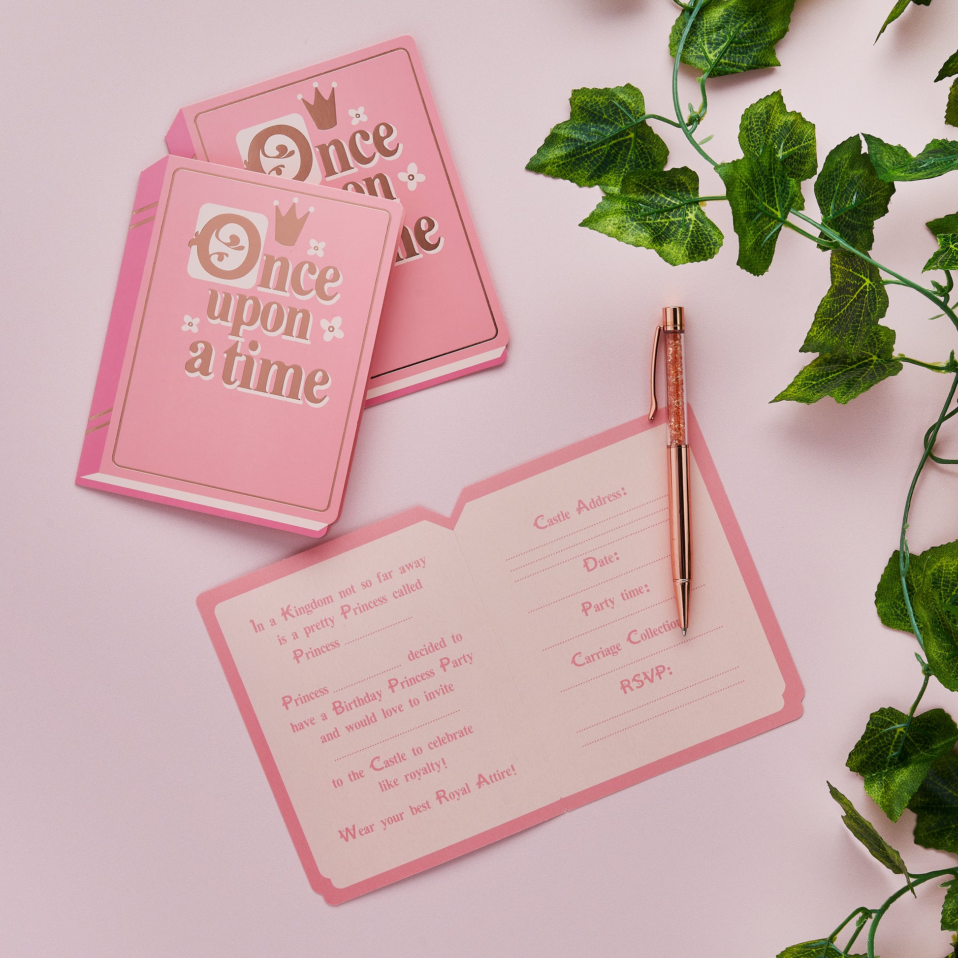 Looking for partyware ideas for her? Capture the joy of a magical moment with enchanting fairytale-themed partyware. A 'once upon a time' book cover invites the imagination to reveal what's inside, making every invitation sent and party planned an adventure.