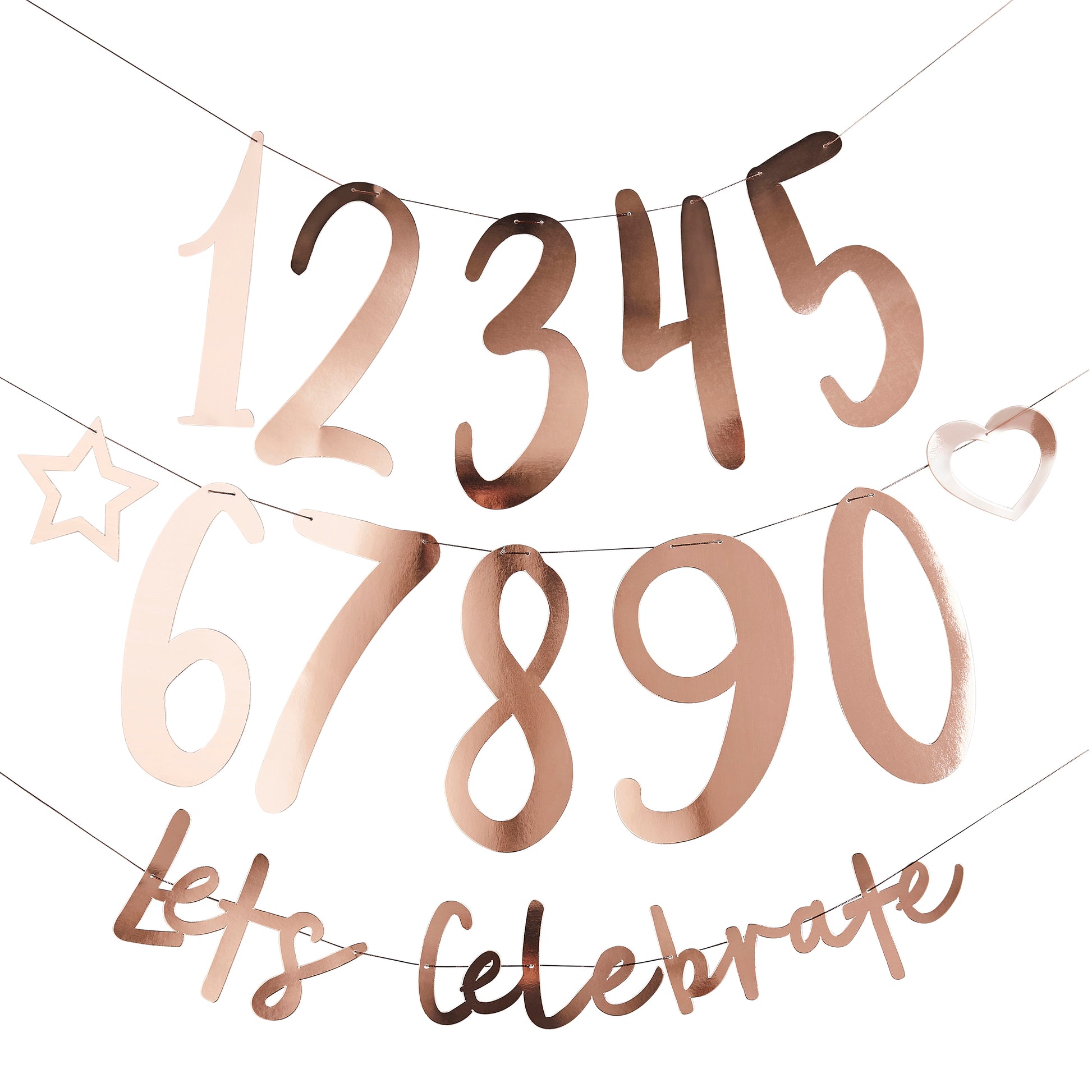 Looking for party ideas for someone special? Celebrate life's special moments with a personal touch! Surprise your loved one with a customised party banner adorned with sparkling rose gold numbers. Capture the excitement of the occasion with this elegant, feminine set.