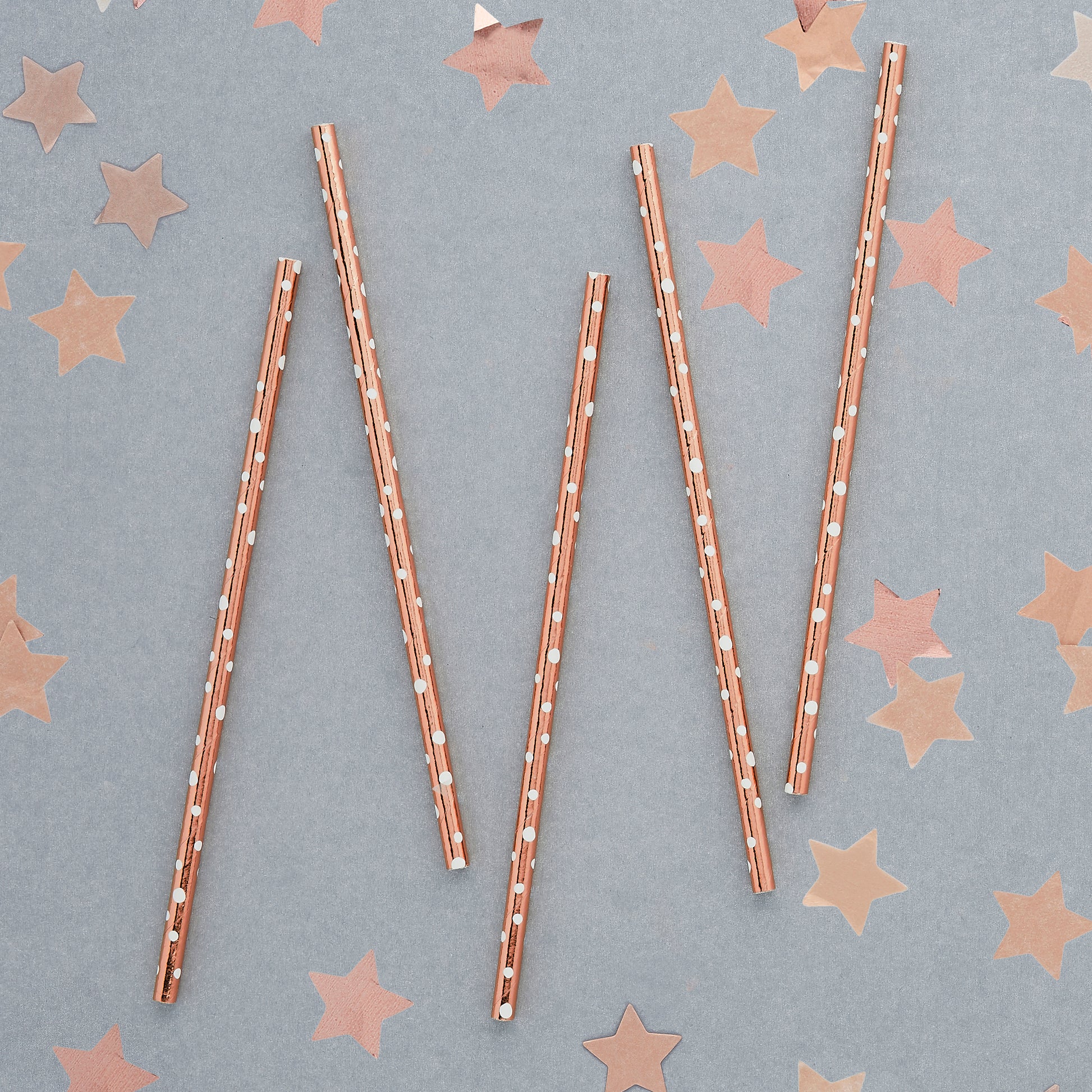 Contains: 20 Pack Rose Gold Dot Paper Straws