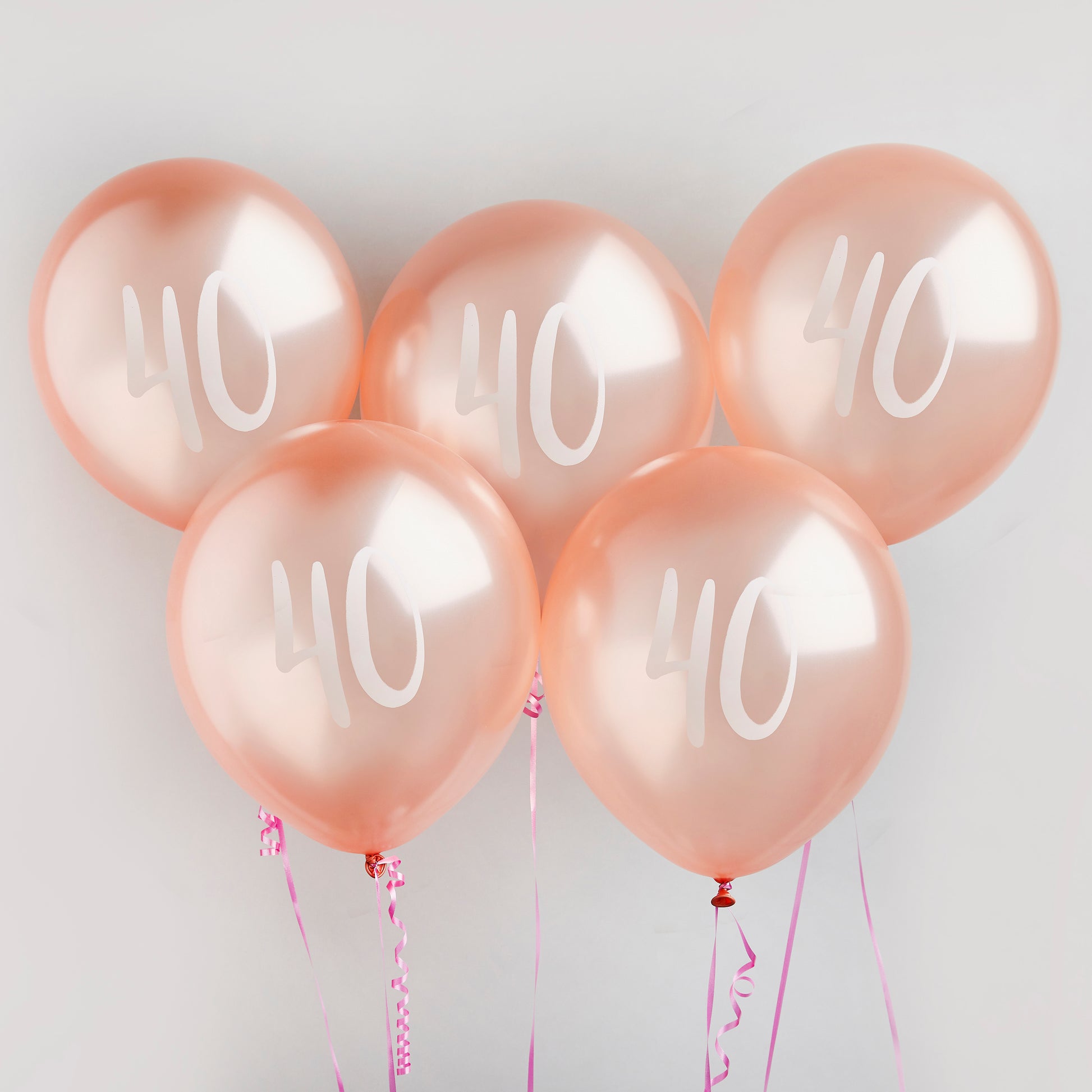 Good to know: This pack of 5 rose gold '40' balloons are made from latex. Check out our Hootyballoo collection for matching items.