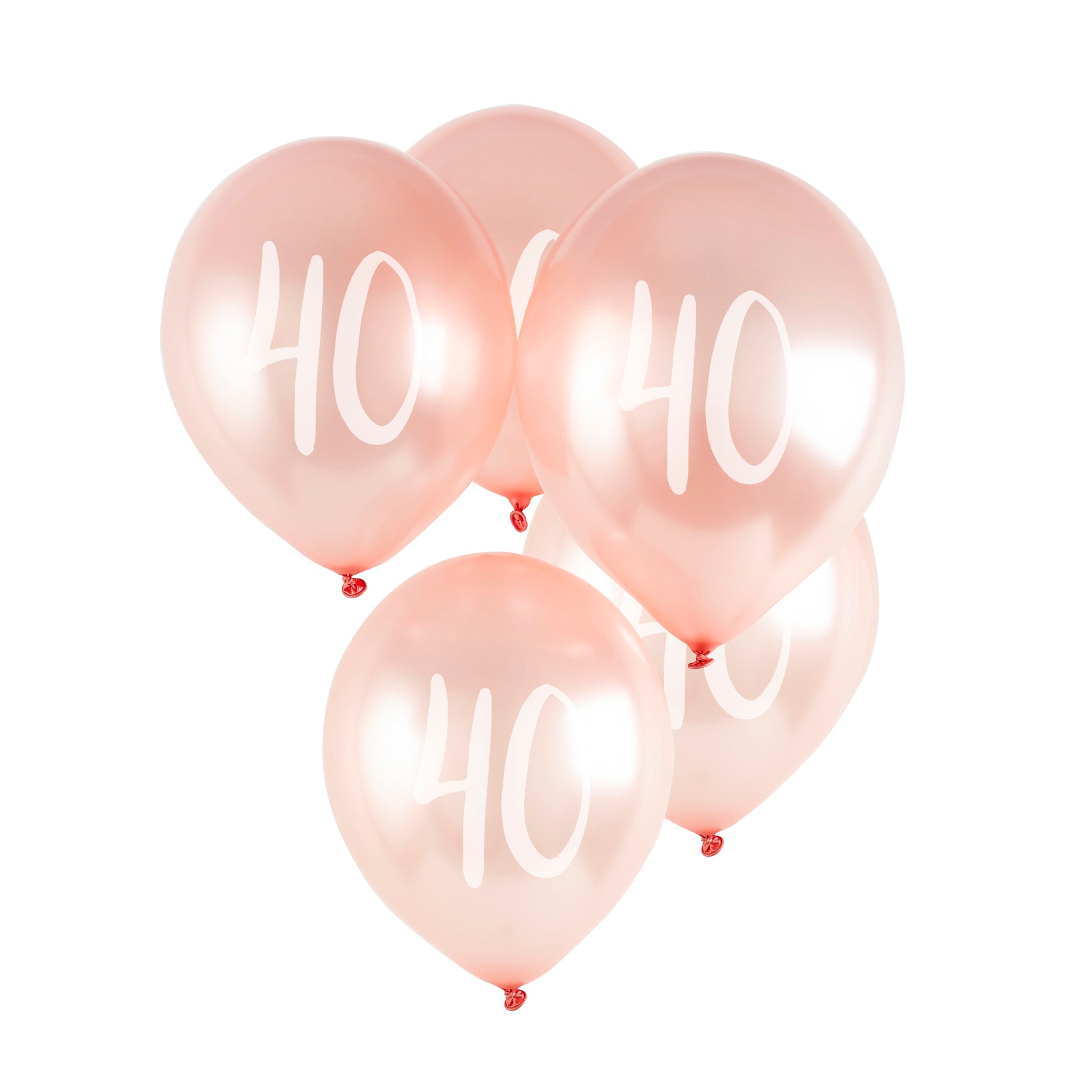 Contains: 5 Pack Rose Gold Number '40' Balloons
