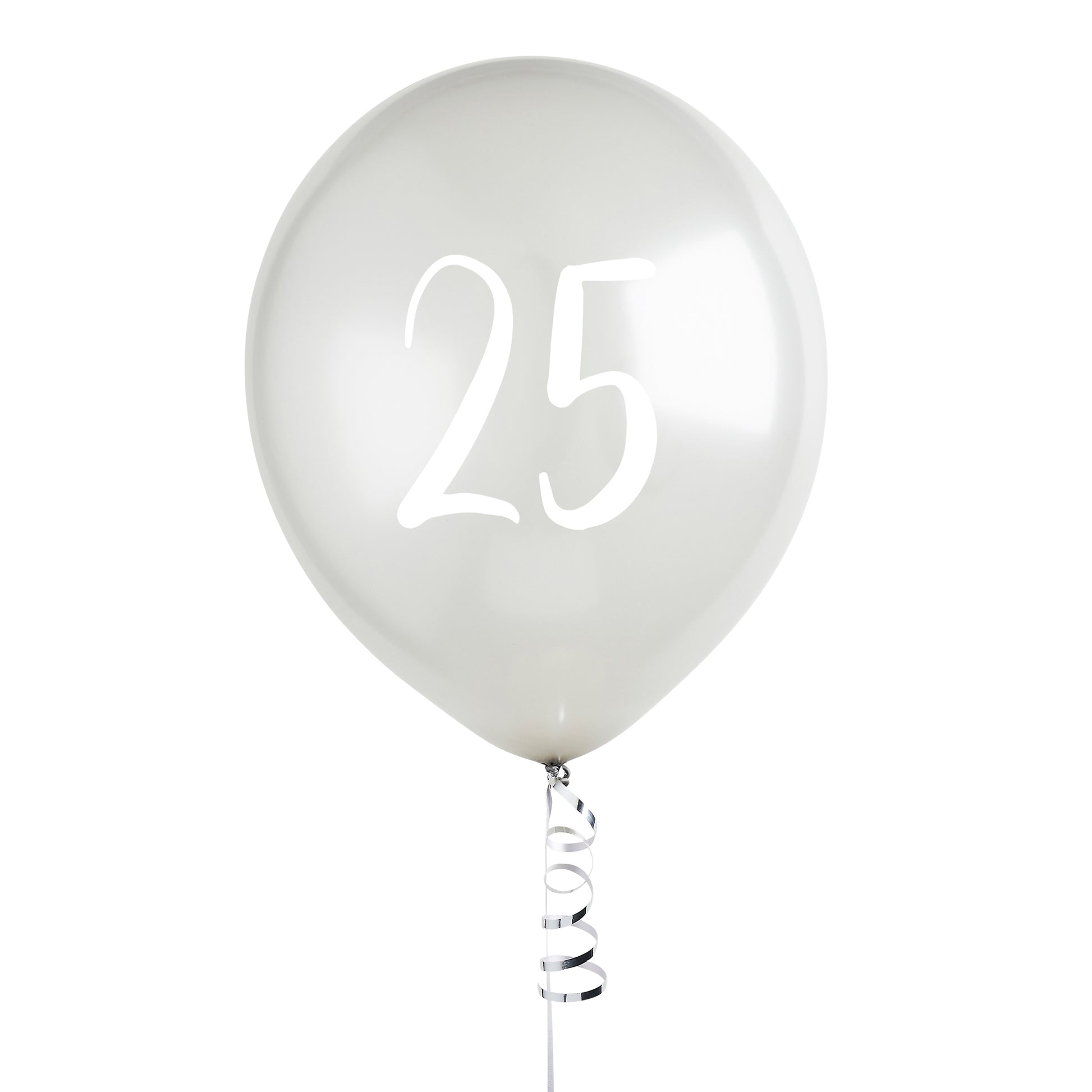 Details: Celebrate a milestone in style with this pack of 5 silver latex 12" balloons featuring a stylish '25' design. From Hootyballoo's partyware range, this thoughtfully designed set is perfect for making a special someone feel happy on their special day.