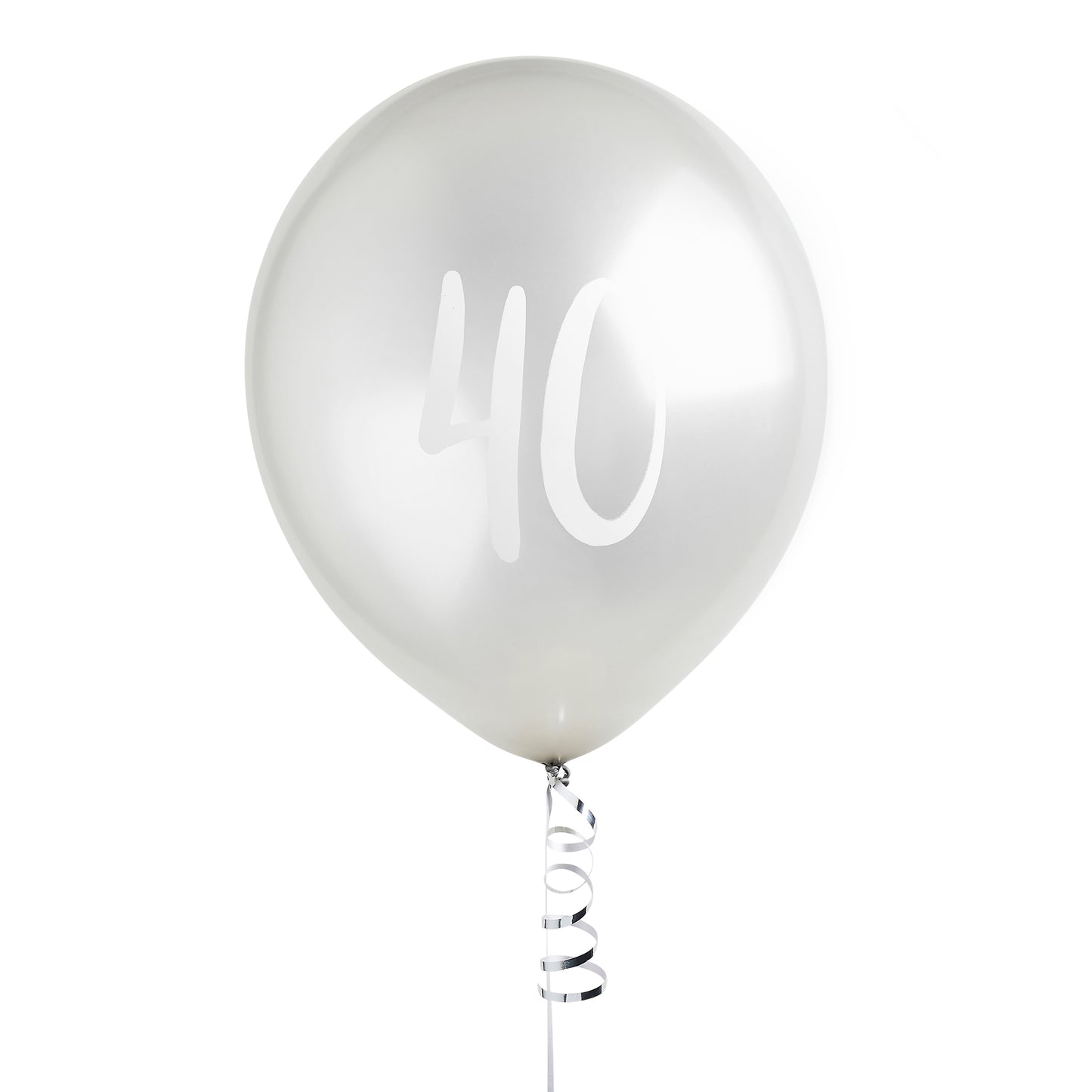 Details: Celebrate a special person's milestone with this pack of 5 silver latex 12" balloons, adorned with the number '40'. Part of Hootyballoo's partyware range, these balloons are thoughtfully designed to bring happiness to any occasion.