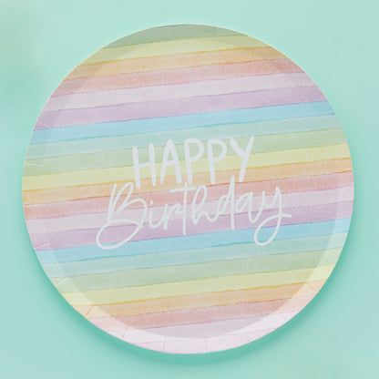 Contains: 8 Pack Eco Rainbow 'Happy Birthday' Paper Plates