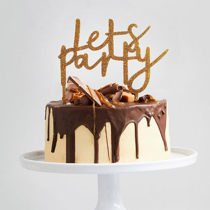 Contains: A Gold 'Lets Party' Cake Topper