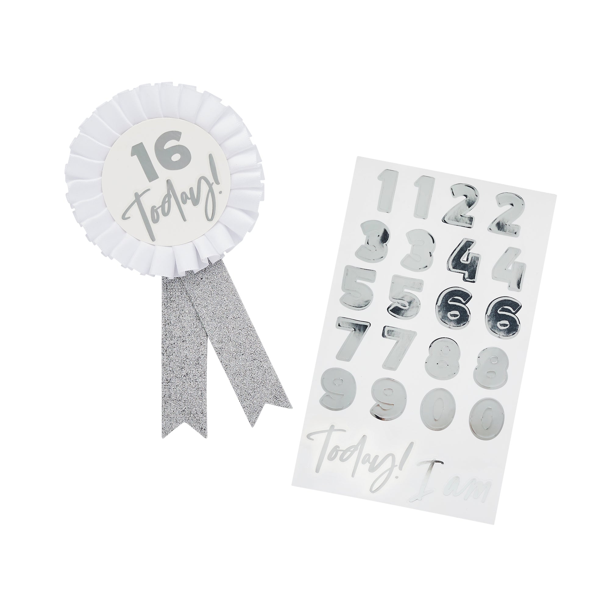 Contains: Personalised Silver Milestone Birthday Badge with Stickers