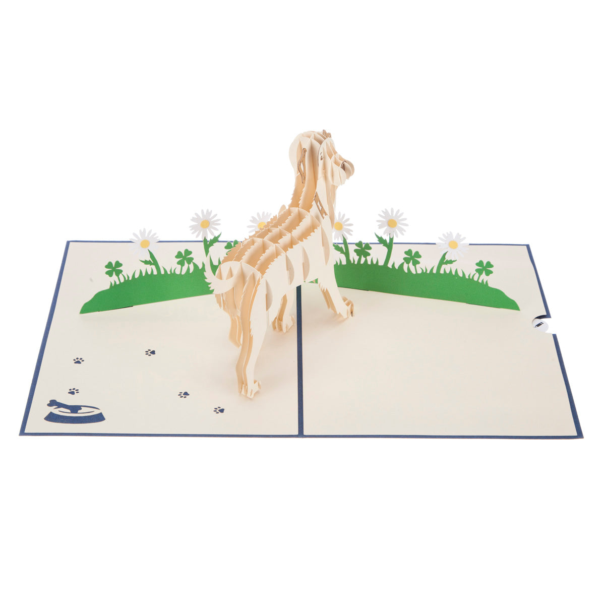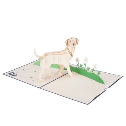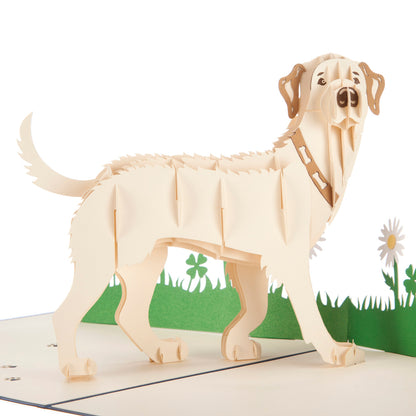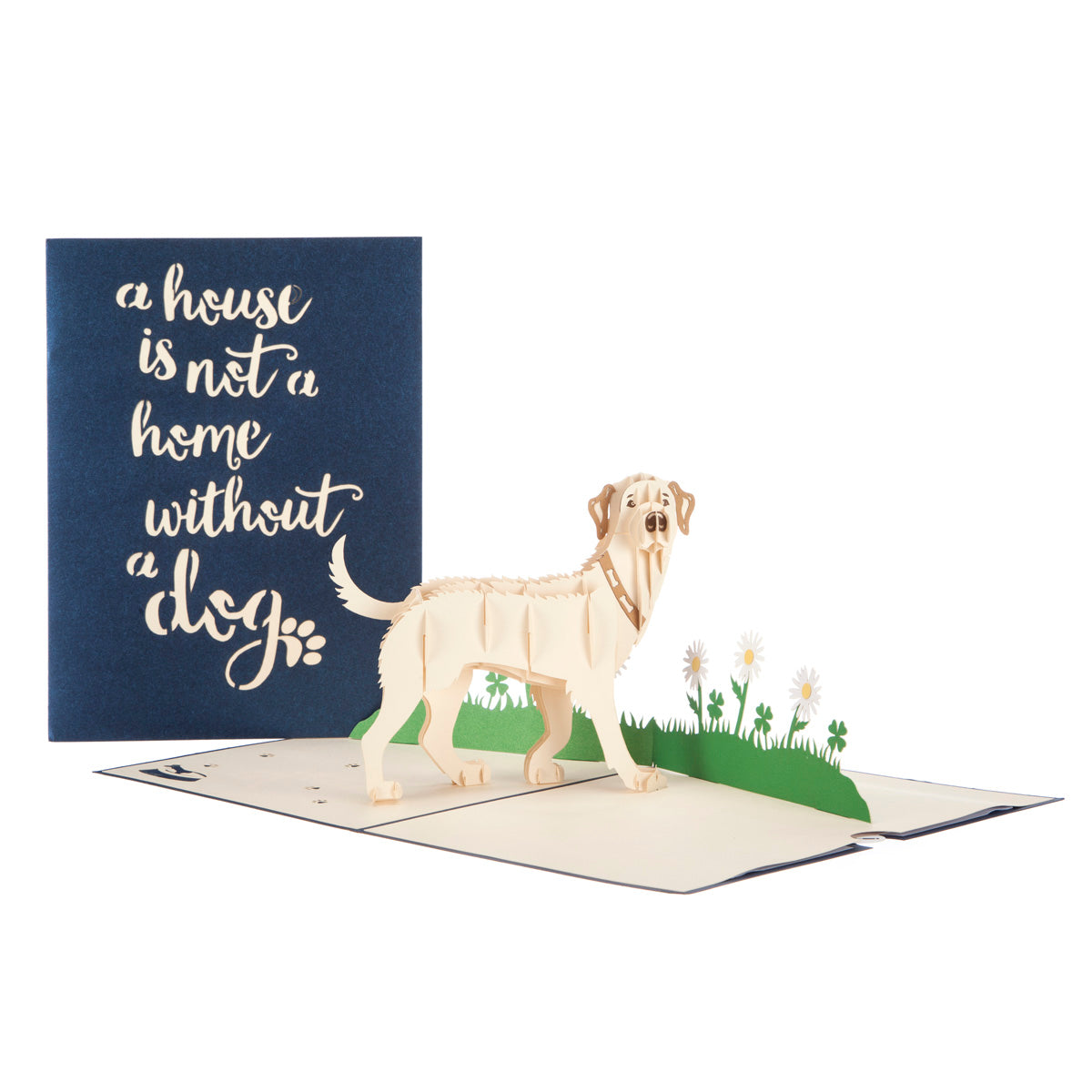 Details: It truly is what's inside that counts, each one of these Cardology 3D pop up cards hides a surprise intricate die-cut pop out inside. The Every House House Needs A Dog Golden Labrador card features a delicate laser-cut caption "a house is not a home without a dog" on the front of the card and displays a hand-crafted design featuring a golden labrador dog on the inside once opened.