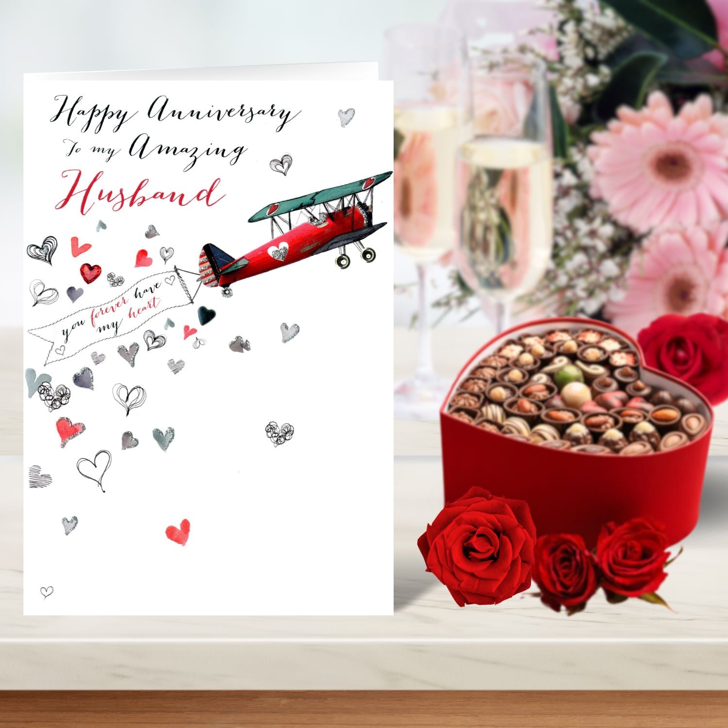 Message: Happy Anniversary to my Amazing Husband You forever have my heart You mean the world to me With all my love today and always