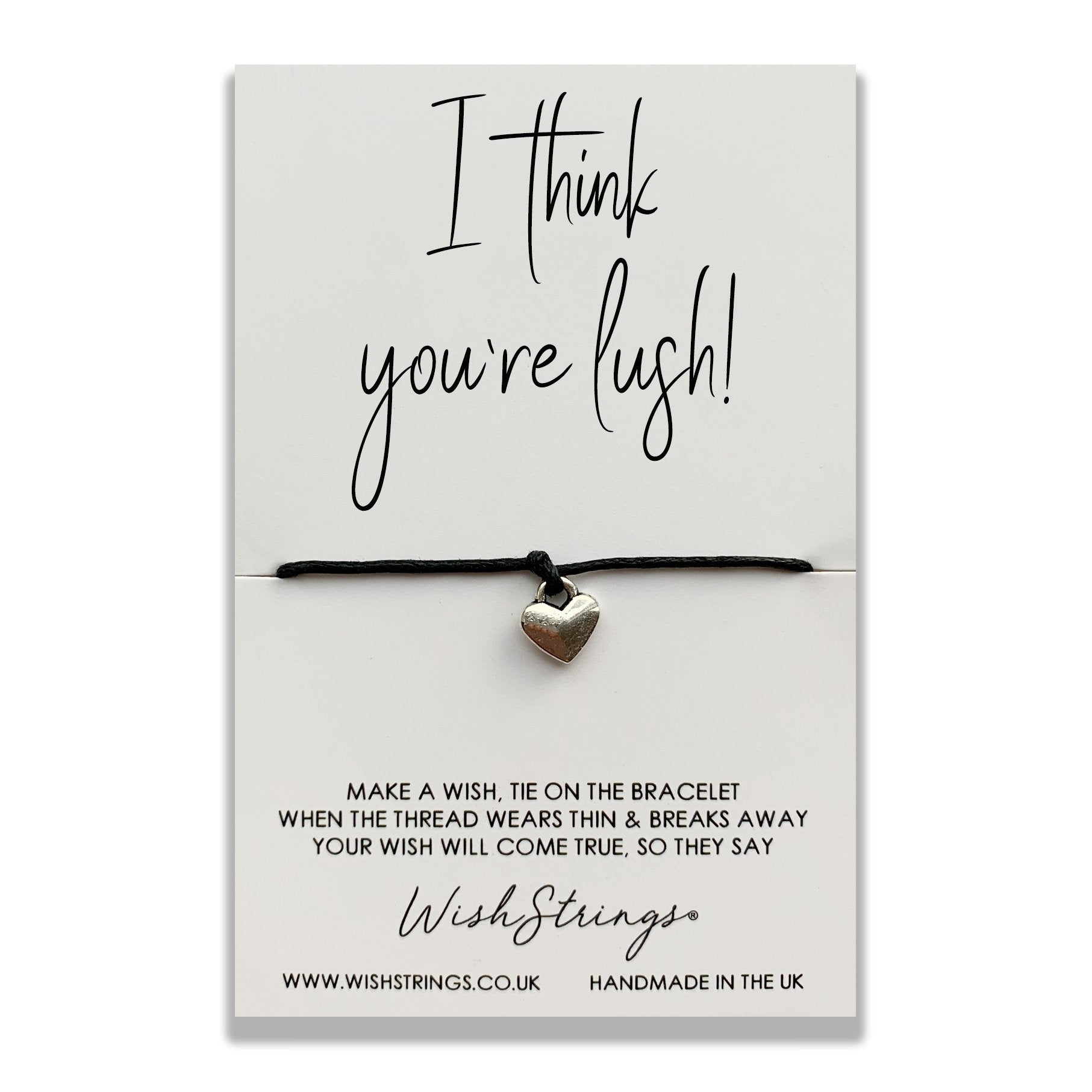 Caption: I Think You're Lush! - (White background, black text) with a Heart charm.