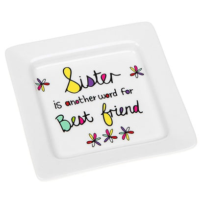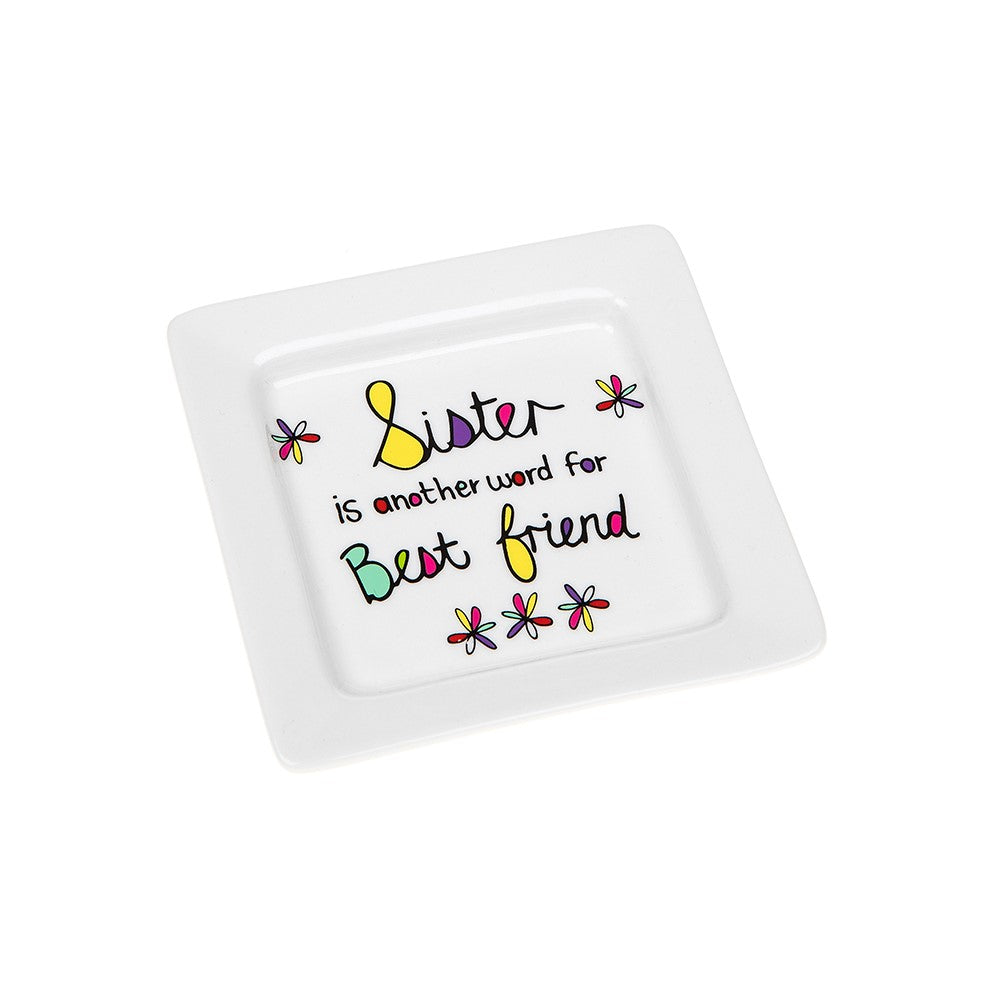 Details: A beautiful mini ceramic square shaped trinket tray from our sentimental 'Just Saying' range. This gorgeous gift idea is finished with colourful detailing featuring a sentimental saying and comes in a matching gift box.