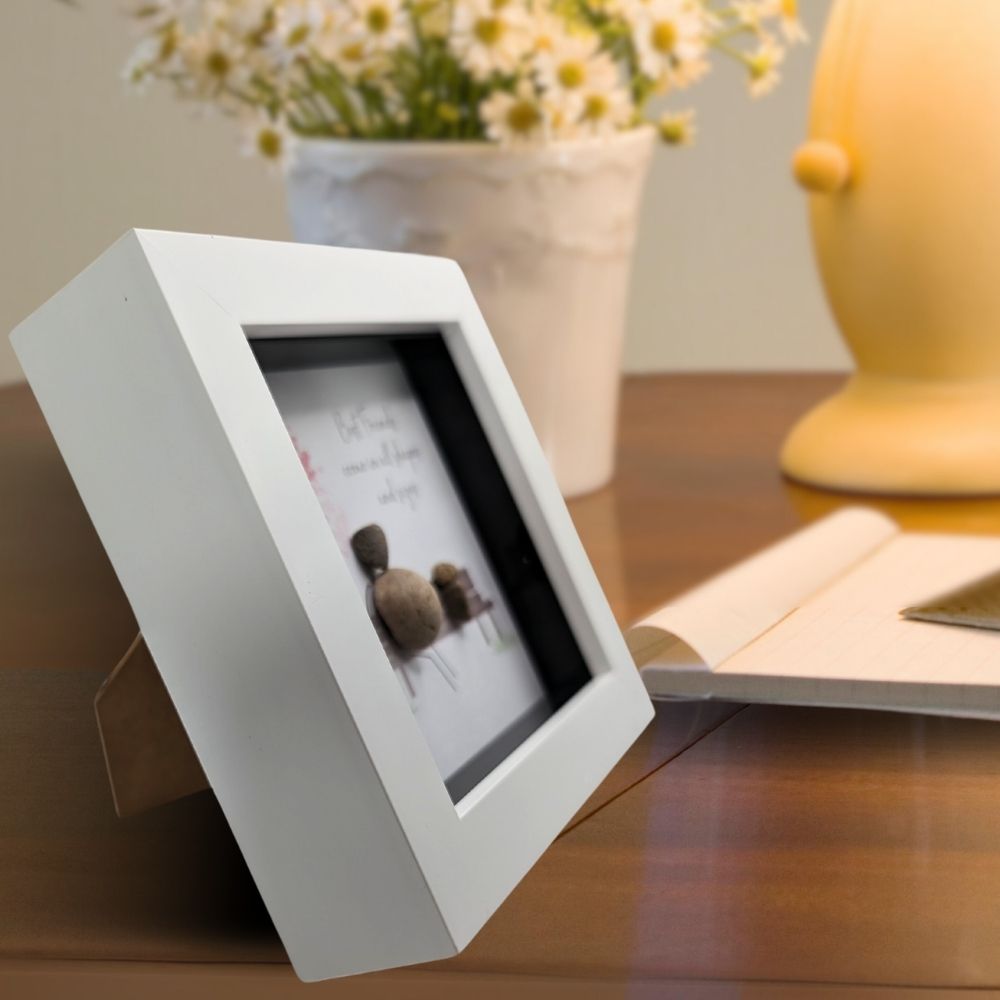 Details: This unique handmade framed print from the La De Da! range features a heartwarming scene of a person sitting on a bench with their dog, accompanied by the caption 'Best Friends come in all shapes and sizes'. Its pebble art design and thoughtful composition are sure to make a cherished gift for someone with an artistic eye.