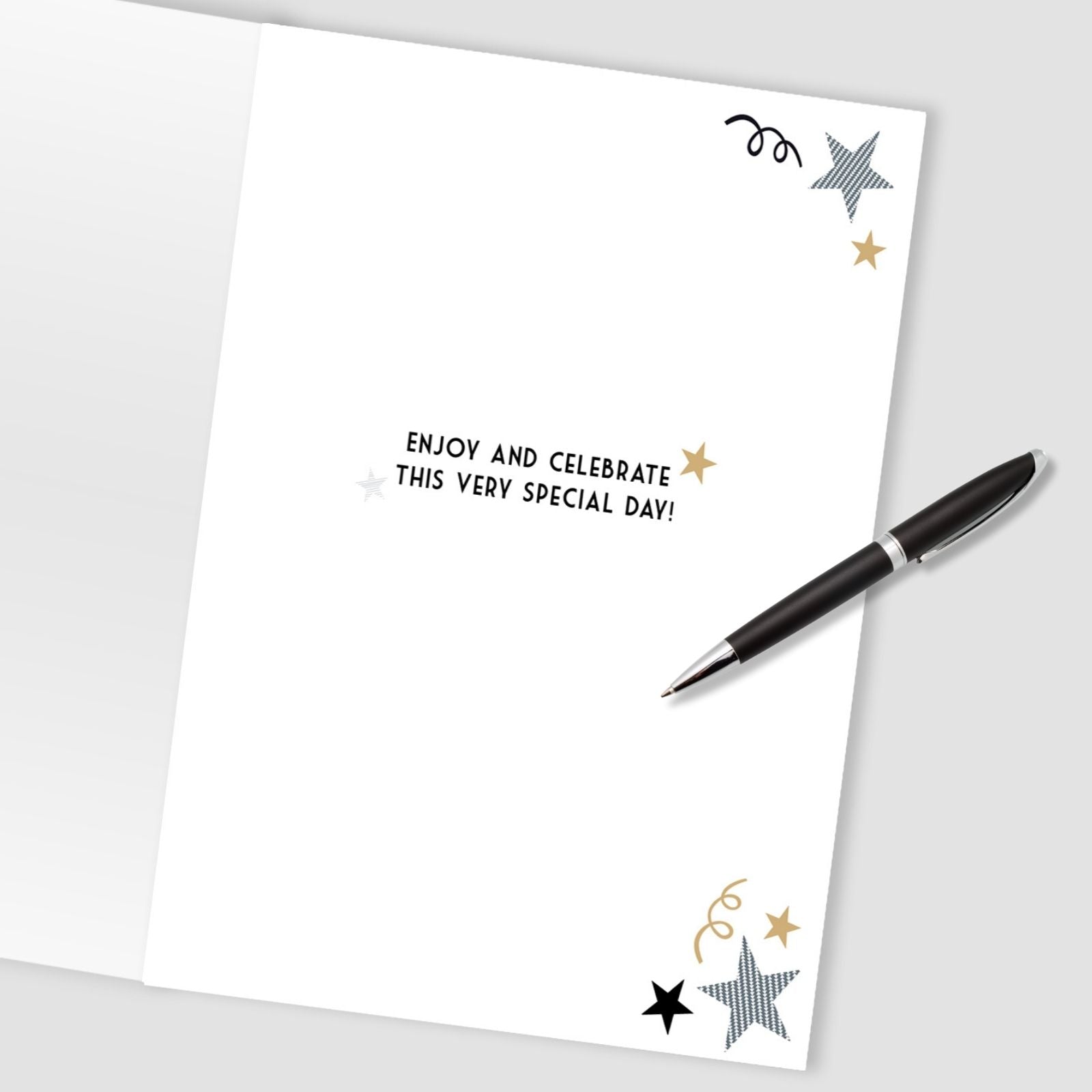 Looking for birthday greeting card ideas for someone special? This elegant handmade card captures the joy of a milestone birthday, featuring sparkling gold accents and a celebratory design. It's perfect for groups to collectively express their affection, making the recipient feel truly valued and cherished on their special day.