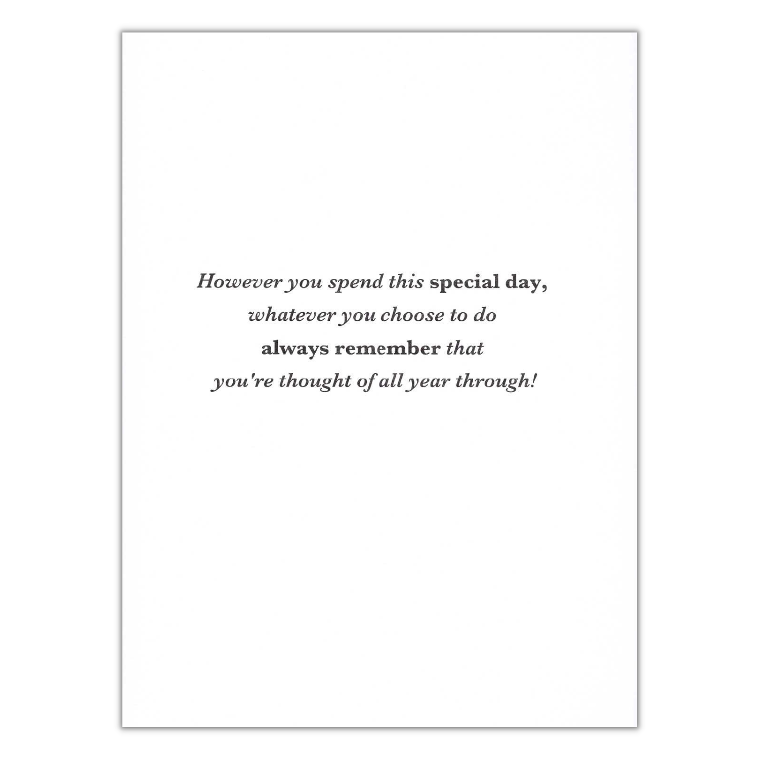 Message Inside: However you spend this special day, Whatever you choose to do always remember that you're thought of all year through!
