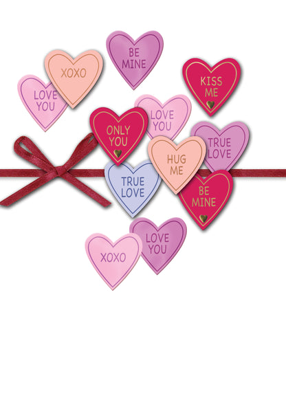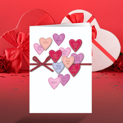 Looking for greeting card ideas for her? Receiving this heartfelt card adorned with sweet and playful love heart sweets is a touching reminder of your affections, a special way to surprise your loved one and show them how much they mean to you.