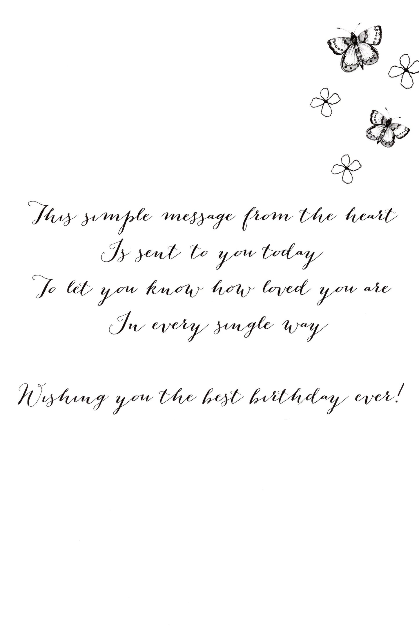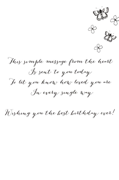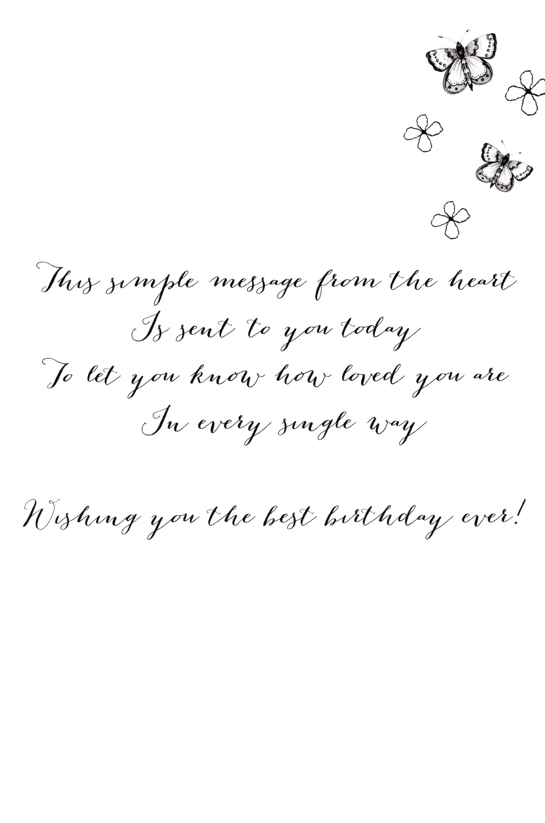 Message: This simple message from the heart Is sent to you today To let you know how loved you are In every single way Wishing you the best birthday ever!