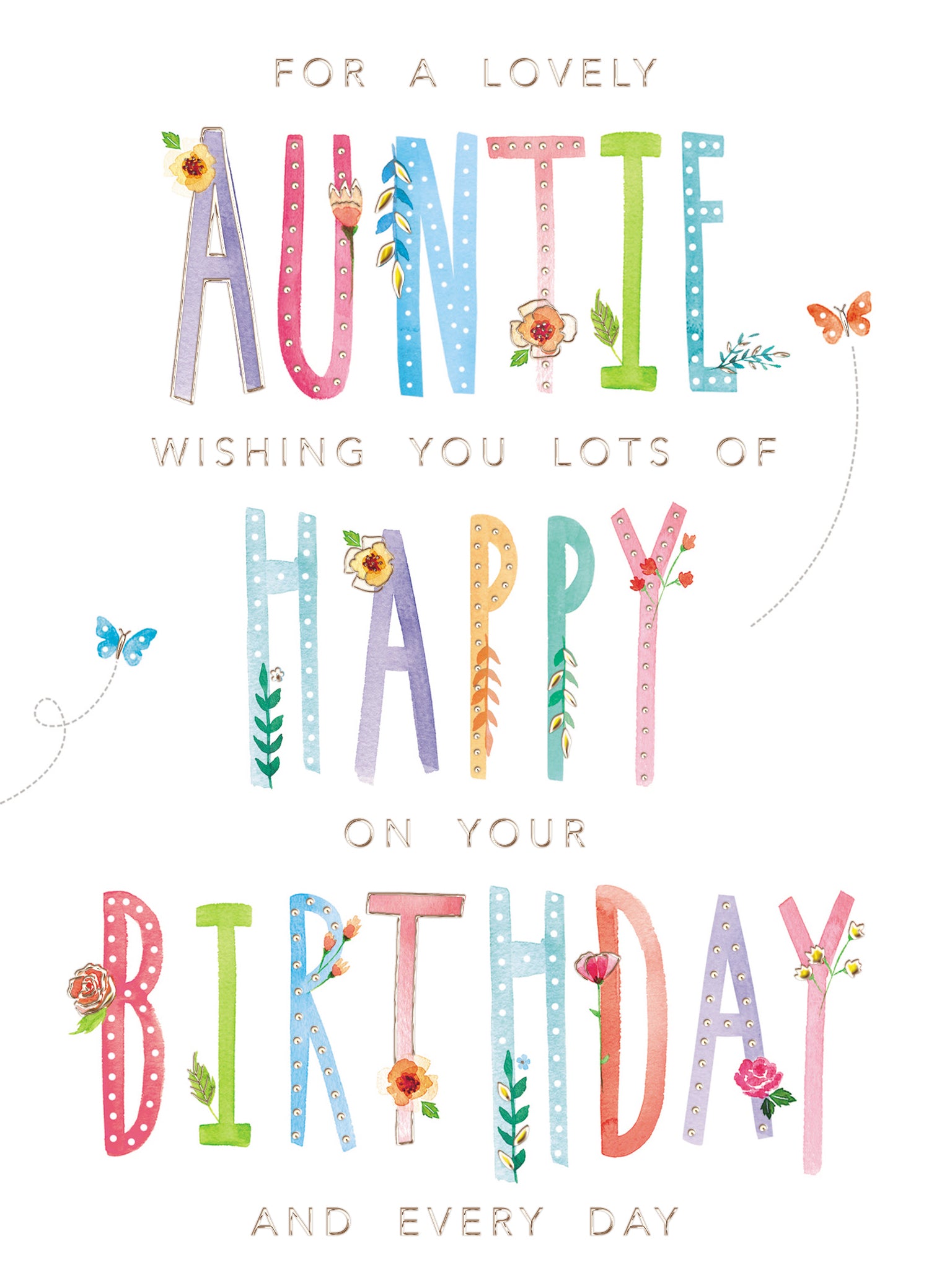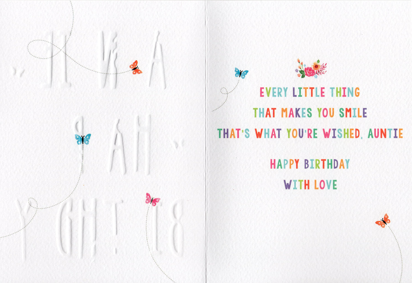 Message: EVERY LITTLE THING THAT MAKES YOU SMILE THAT'S WHAT YOU'RE WISHED, AUNTIE HAPPY BIRTHDAY WITH LOVE