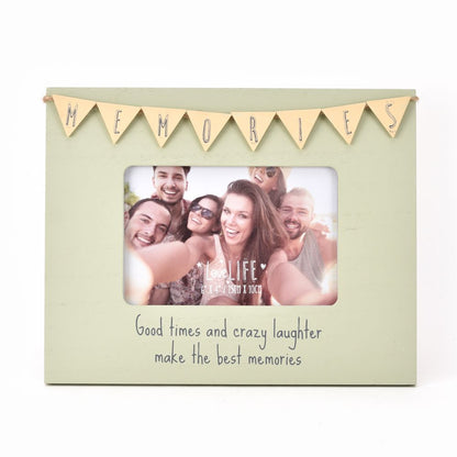 Details: A wooden photo frame embellished with bunting from our popular Love Life range. Perfect to add your favourite photo, this freestanding frame will look fab on any desk or shelf. Each frame is supplied in a open fronted gift box making it the perfect gift idea.