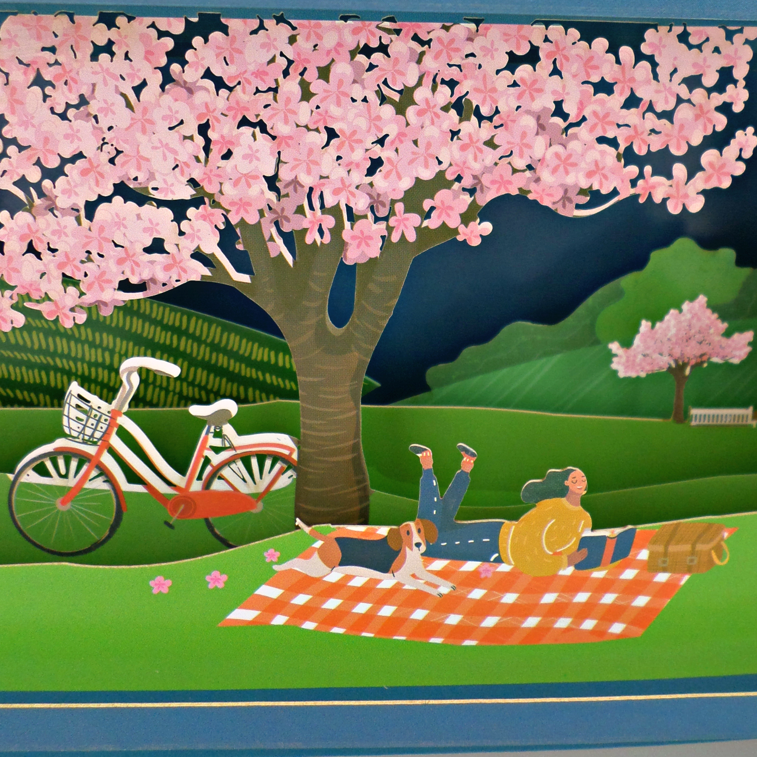 Looking for card ideas for a dog lover? Brighten their day with this spectacular Pop Up card, featuring a beautiful cherry blossom tree picnic scene to remind them of the moments they share with their furry friend